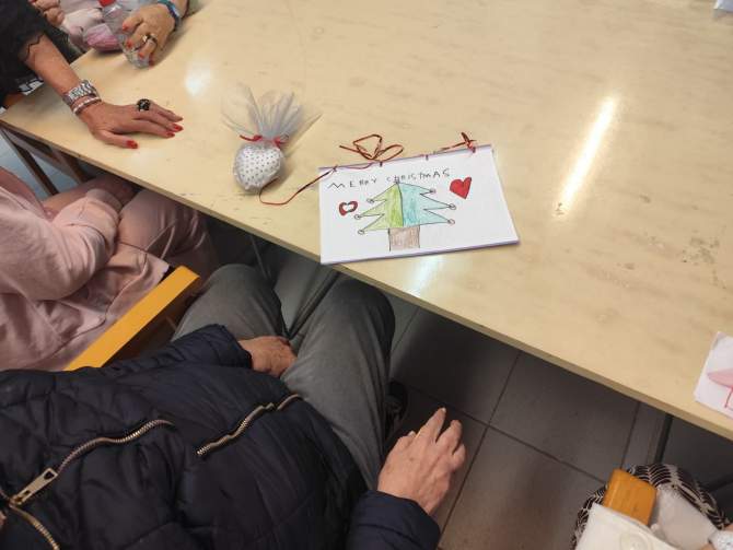 Los protagonistas de este proyecto recibieron cartas de felicitación navideña de parte de los niños y niñas del área de refuerzo educativo del CEIP Juan Negrín, del barrio de Las Remudas, con las que no pudieron evitar emocionarse. Asimismo, compartieron el tiempo de la merienda con los voluntarios asistentes en esta jornada, se divirtieron con juegos de mesa y les hicieron entrega de detalles navideños elaborados a mano.