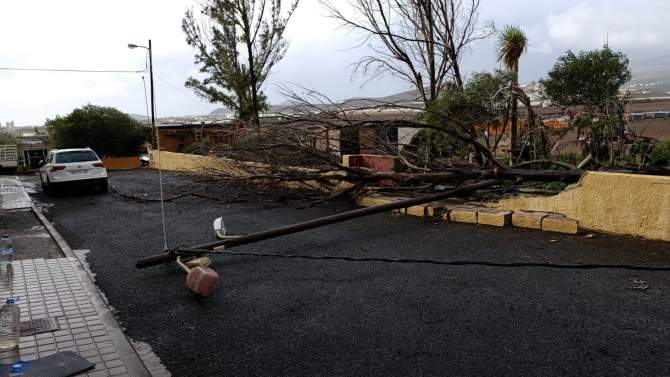 Desplome de una torre de alta tensión en Ojos de Garza y una cornisa en Jinámar