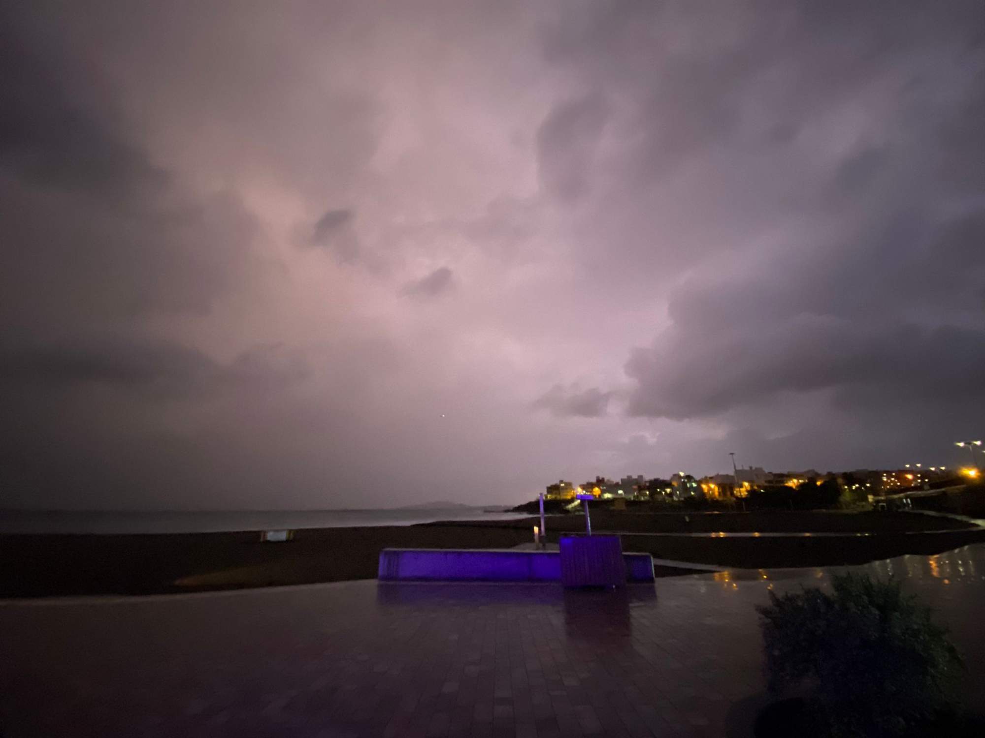 La tarde avanza en un contexto de máxima vigilancia, mientras la tormenta eléctrica ilumina el cielo de Telde con constantes relámpagos y un aparato tormentoso poco habitual en el municipio.
