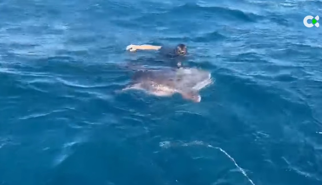 Tras las primeras maniobras de asistencia, el pez luna fue remolcado mar adentro, alejándolo de la zona de rompiente y devolviéndolo a aguas más profundas, donde tendría mayores opciones de supervivencia.
