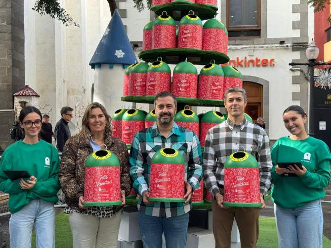 La plaza de San Gregorio luce, hasta la tarde noche de este jueves, un árbol navideño de cuatro metros de altura, formado por 100 miniglús, para impulsar el reciclaje de envases de vidrio durante las Navidades. Una iniciativa que llega a la ciudad a través de Ecovidrio, en colaboración con el Ayuntamiento de Telde, a través de una campaña de sensibilización para concienciar a los y las teldenses sobre la importancia de dar una segunda vida a este tipo de recipientes en estas fechas, en las que se genera hasta el 20% de todos los residuos de envases de vidrio del año, según los organizadores.