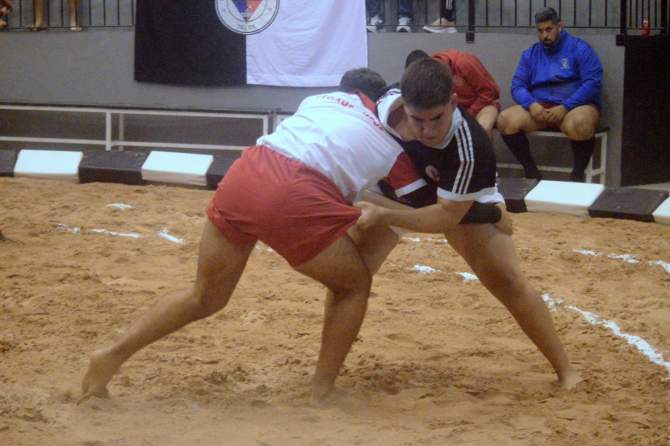 Cristo López, teldense del CL Almogarén, en una lucha contra el Castro Morales (Foto: Juan Antonio Hernández)La gran final de Liga Cabildo de Gran Canaria que enfrentará este viernes al CL Almogarén y al CL Unión Gáldar a las 21.00 horas en el terrero Municipal de Vecindario contará con una nutrida representación teldense, tanto con ropa de brega como con silbato en boca.
