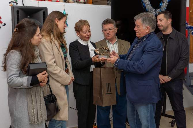 Además, Máximo Riol, compañero y amigo de Juan Betancor, hizo entrega de una réplica de una escultura de la serie Hábitat como símbolo de gratitud y admiración, un gesto que añadió aún más emoción a un acto profundamente sentido por todas las personas presentes.