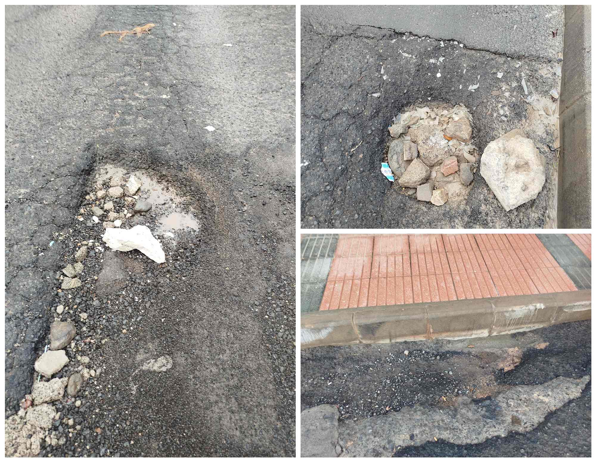 Uno de los aspectos que más inquieta a los residentes es la cercanía de estos desperfectos a los bordillos y aceras. En varios puntos, el asfalto deteriorado se encuentra junto a la línea de la calzada, así como piedras sueltas y bordes irregulares.