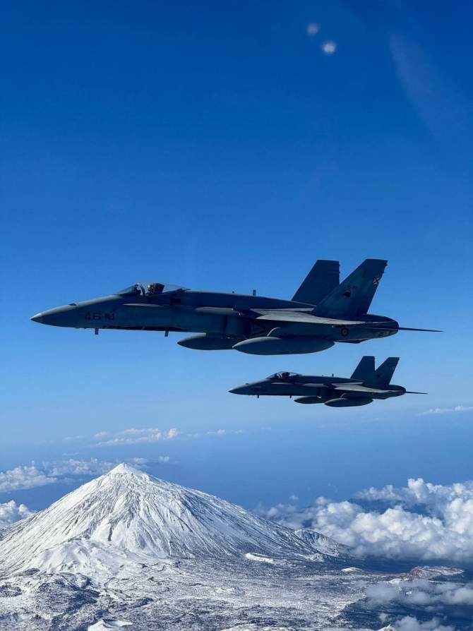 La fotografía aérea, tomada en pleno vuelo, permite apreciar el contraste entre el azul del cielo, el blanco de la nieve y la silueta oscura de los cazas, una composición que ha sido calificada por muchos como “histórica” y “emocionante”. Un homenaje visual al Teide y a quienes, desde el aire, velan por la seguridad de Canarias.
