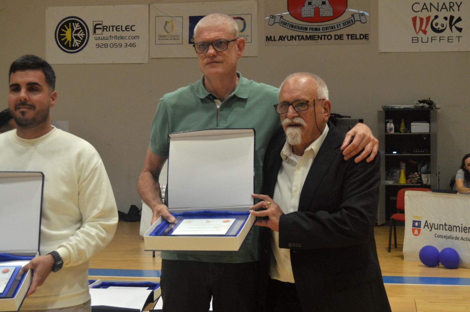 En el apartado de jugadores destacados, Ortga recordó trayectorias individuales surgidas de la cantera y con proyección posterior fuera del ámbito local. Entre los nombres mencionados figuraron Pepón Artiles y Fran Guerra, este último representado en el acto por Alejandro Gutiérrez, además de otros referentes vinculados a distintas etapas del club como Mario Santana y Paco Santana, presentados como ejemplos de carreras que tuvieron su punto de partida en Telde y alcanzaron categorías nacionales e internacionales. Todos los mencionados recibieron diploma y placa.
