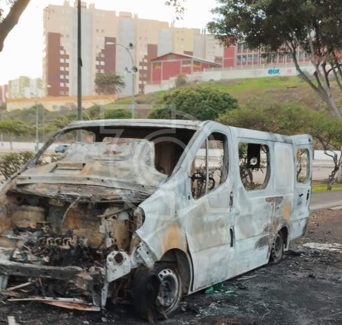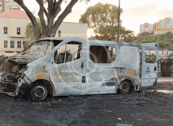 Un vehículo tipo furgón apareció totalmente calcinado en la mañana de este martes en la explanada de Jinámar, espacio donde cada domingo se celebra el mercadillo ambulante del barrio. El suceso fue detectado a primera hora por vecinos de la zona.