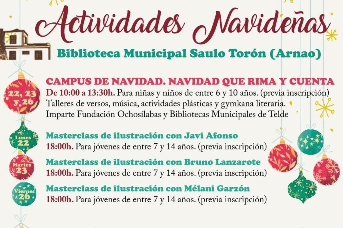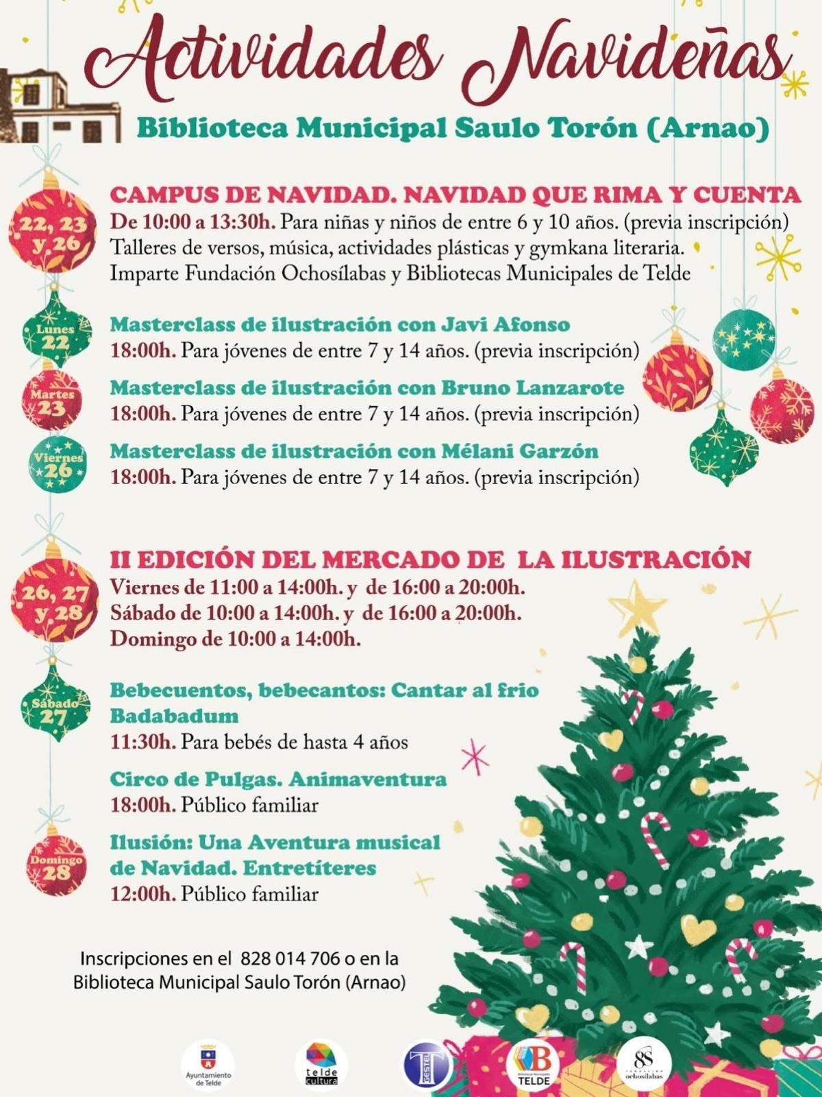 La agenda cultural de Telde para este fin de semana llega marcada por la celebración del Campus de Navidad y del Mercado de la Ilustración en la Biblioteca Saulo Torón del parque urbano de Arnao.