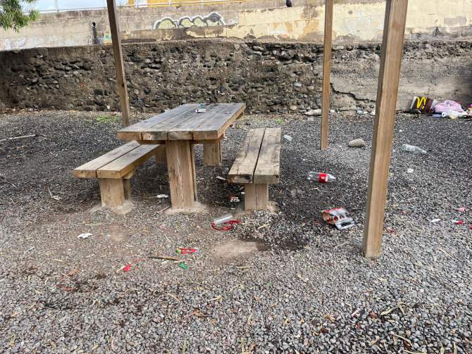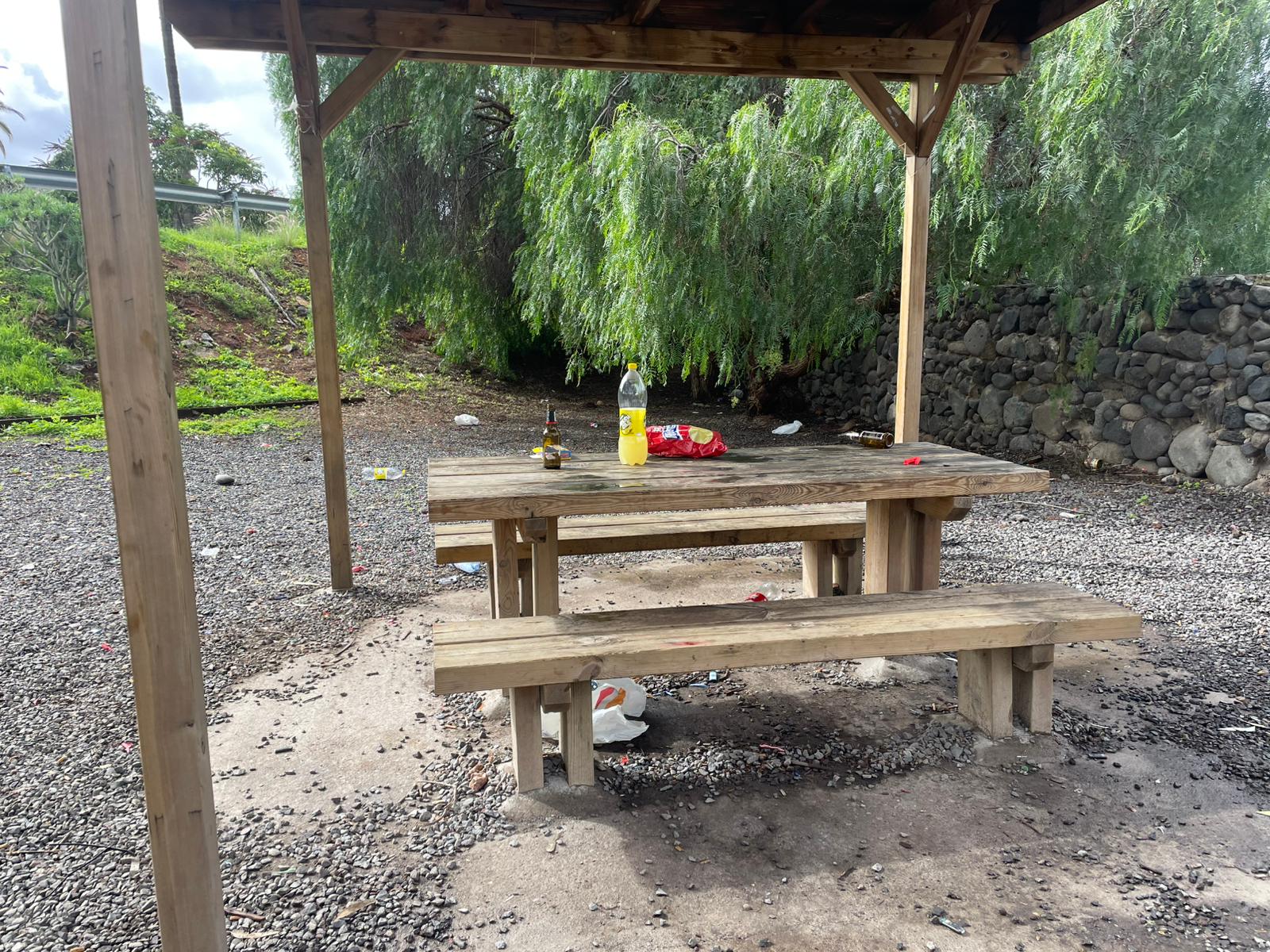 Usuarios del área recreativa del Barranco Real de Telde, a la altura de El Cubillo, critican la suciedad que presenta este espacio público tras las celebraciones que se llevan a cabo los fines de semana.