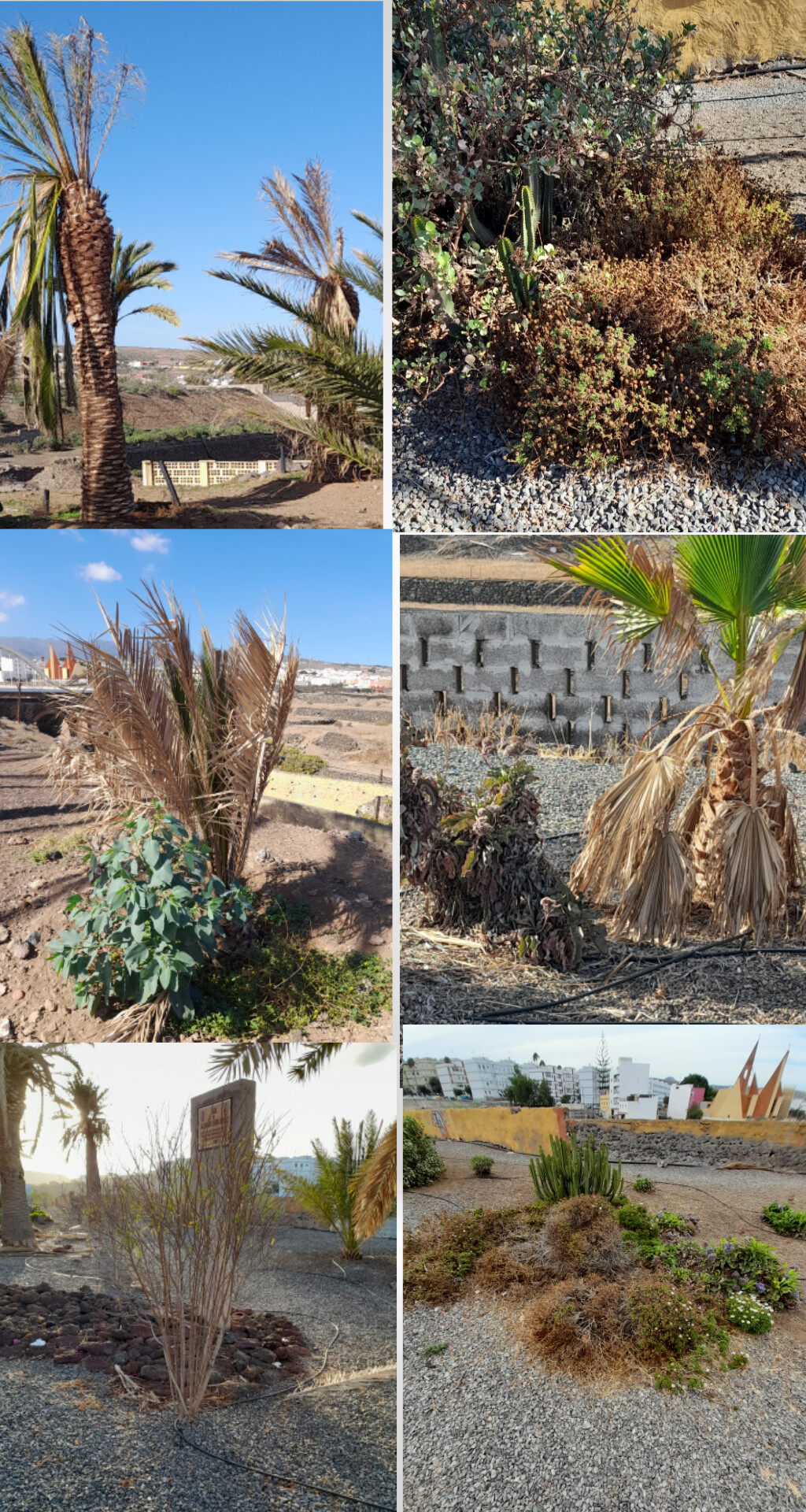 Las palmeras y demás árboles y plantas que adornan las zonas verdes de esta importante vía de comunicación de la ciudad están, en su mayoría, secas, como denuncia un vecino que asegura que ha intentado ponerse en contacto con el concejal de Parques y Jardines del Ayuntamiento de Telde, Juan Francisco Artiles, pero que le ha sido imposible hablar con él.