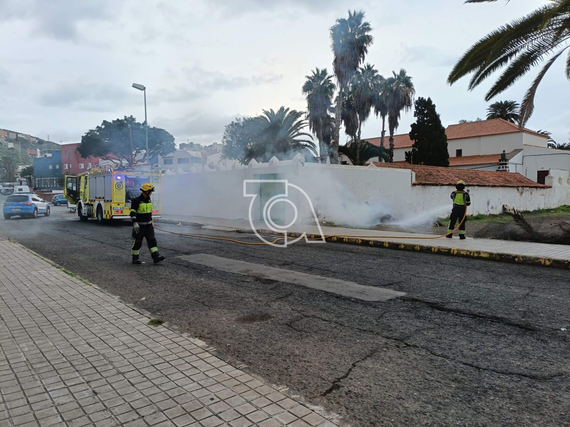 Efectivos del Consorcio de Bomberos de Gran Canaria intervinieron hace unos minutos para apagar un pequeño incendio de hojas de palmeras declarado en la trasera de la iglesia de Jinámar, según confirmaron testigos presenciales a TELDEACTUALIDAD, entre ellos la periodista colaboradora de este periódico Sonia Vega..
