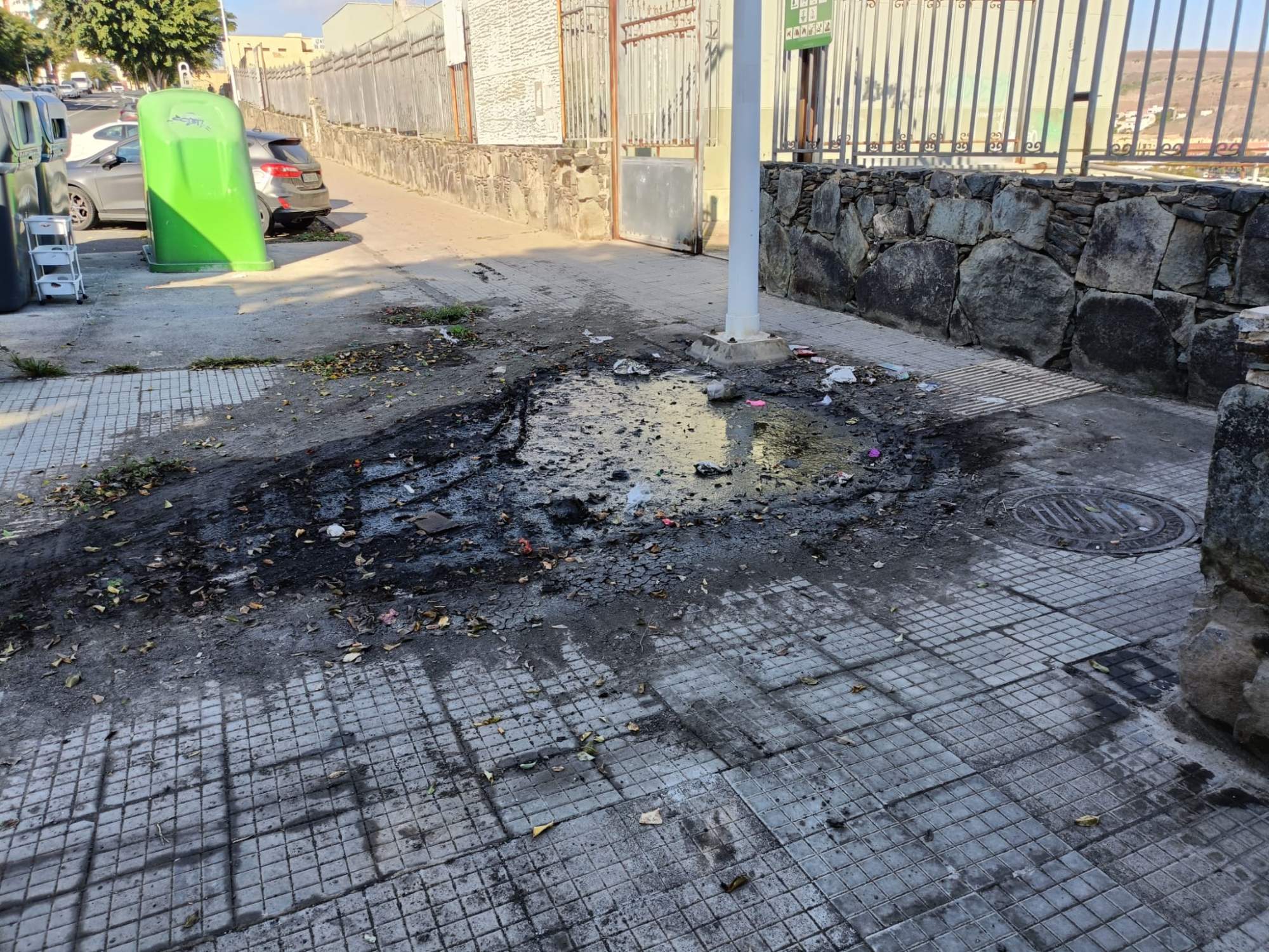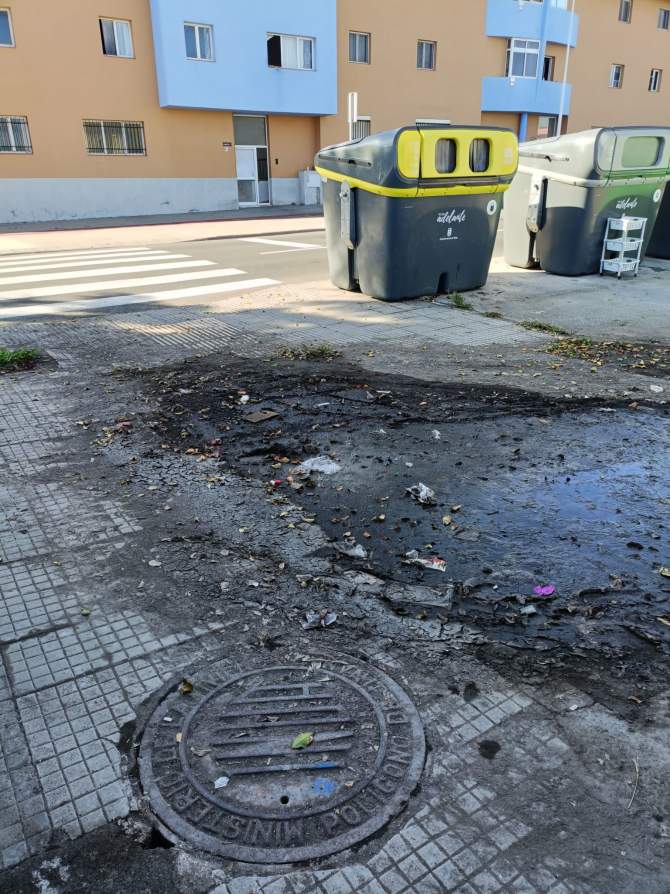 Vecinos del Valle de Jinámar expesan su malestar por un charco cochambroso que se forrma prácticamente a diario frente al residencial Las Violetas, en uno de los accesos al Parque de las Mil Palmeras, con bolsas, envases y residuos dispersos tanto en el entorno inmediato de las papeleras como en el suelo colindante, lo que afecta a una zona de paso habitual de vecinos y usuarios del parque.