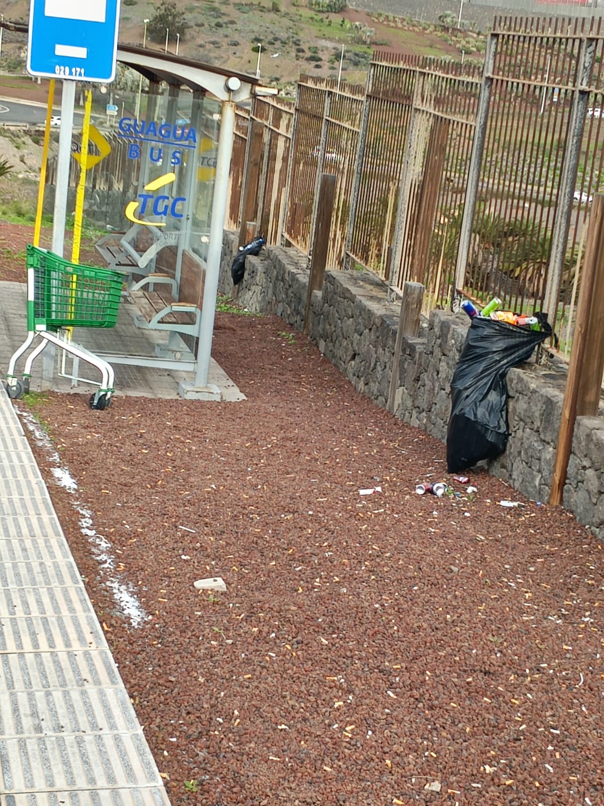 La falta de papeleras en una marquesina de guaguas ubicada en los exteriores de la zona industrial Ajimar, en el Valle de Jinámar y en dirección hacia Las Palmas de Gran Canaria, ha generado el malestar de los usuarios del transporte público. Los afectados señalan que la situación provoca un acumulado constante de residuos en los alrededores, deteriorando la imagen del lugar y afectando a quienes esperan la guagua a diario.