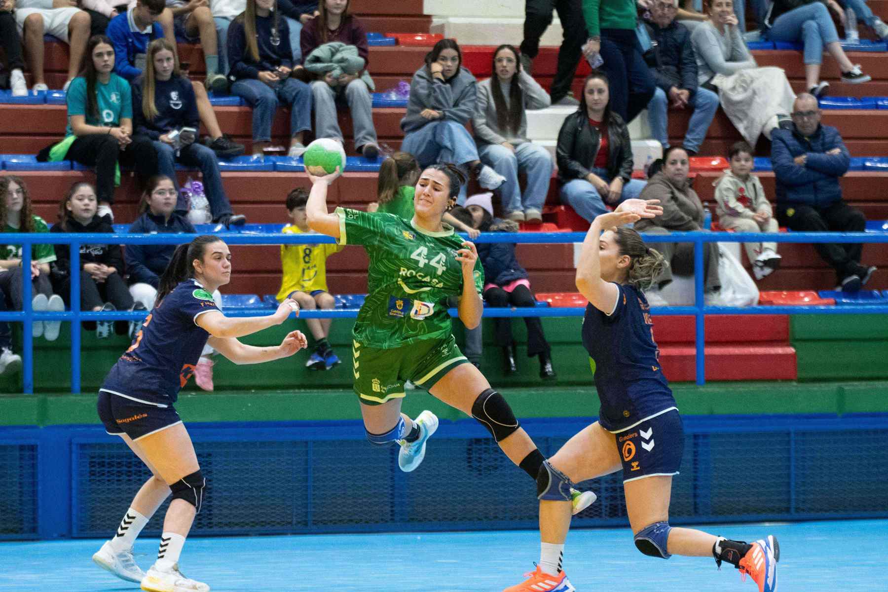 A medida que avanzaban los minutos, la tensión fue en aumento y cada acción se disputó con máxima intensidad. El KH-7 BM Granollers logró ponerse por delante en varios tramos del segundo periodo, pero el Rocasa Gran Canaria respondió con carácter y madurez competitiva, igualando una y otra vez el marcador y evitando que las visitantes rompieran el partido. Los tiempos muertos y las exclusiones marcaron el ritmo en esta fase, obligando a ambos equipos a reajustar continuamente sus planteamientos.