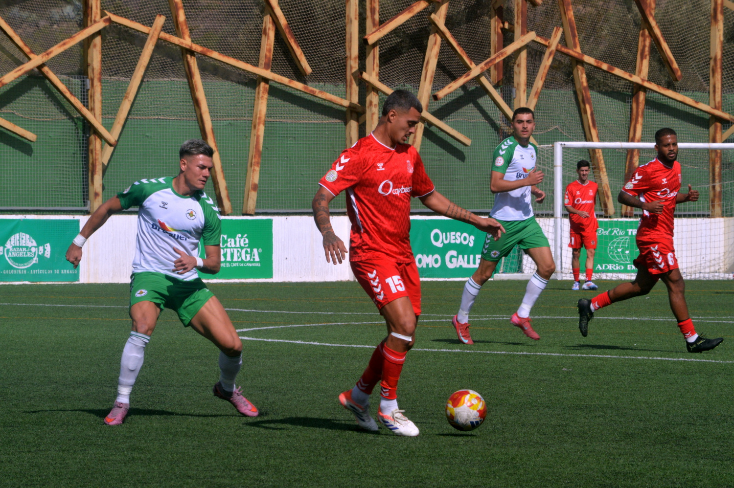 El cuadro teldense quiso dosificar en el primer acto. A falta de efectivos del primer equipo (solo trece, el resto eran juveniles), el conjunto salió más conservador que contra el Unión Sur Yaiza, con una presión menos intensa y en su propia cancha. Dejó a su rival tocar en línea defensiva y le esperó en líneas intermedias, donde apretó de verdad.