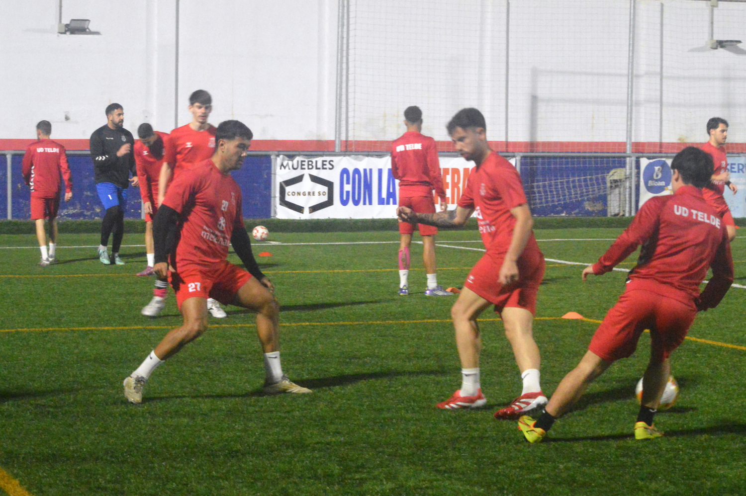 Entrenamiento de la UD Telde este lunes (Foto: Juan Antonio Hernández)La plaga de lesiones que viene sufriendo desde hace tres meses, que se ha recrudecido en las tres últimas semanas, ha dejado una imagen insólita para un equipo de fútbol: una sesión de entrenamiento con solo once jugadores, lo que viene siendo el plantel medio de fútbol sala.