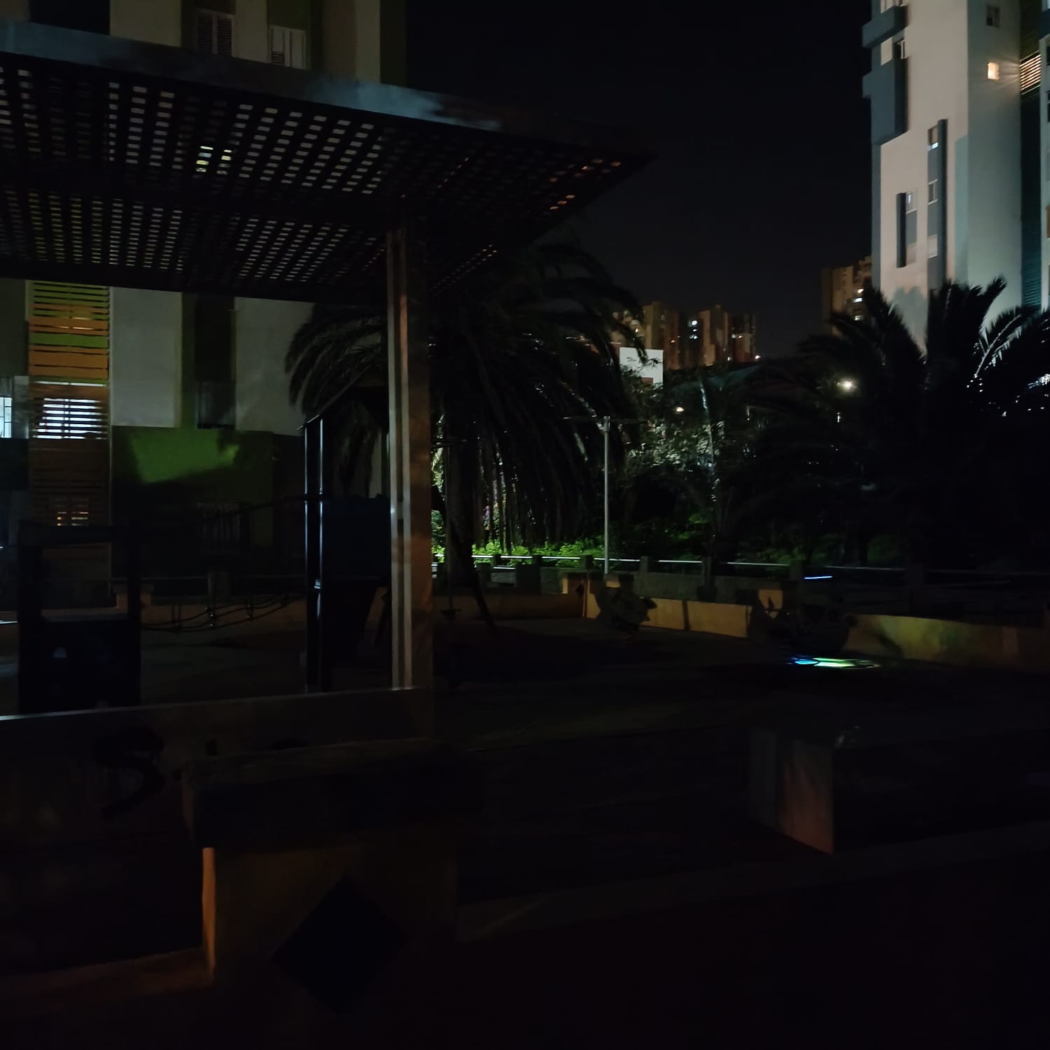 La fotografía remitida a esta redacción muestra el área infantil sumida en la penumbra, con columpios y estructuras totalmente invisibles entre sombras mientras el barrio permanece iluminado en su entorno, evidenciando el contraste y el abandono del espacio.