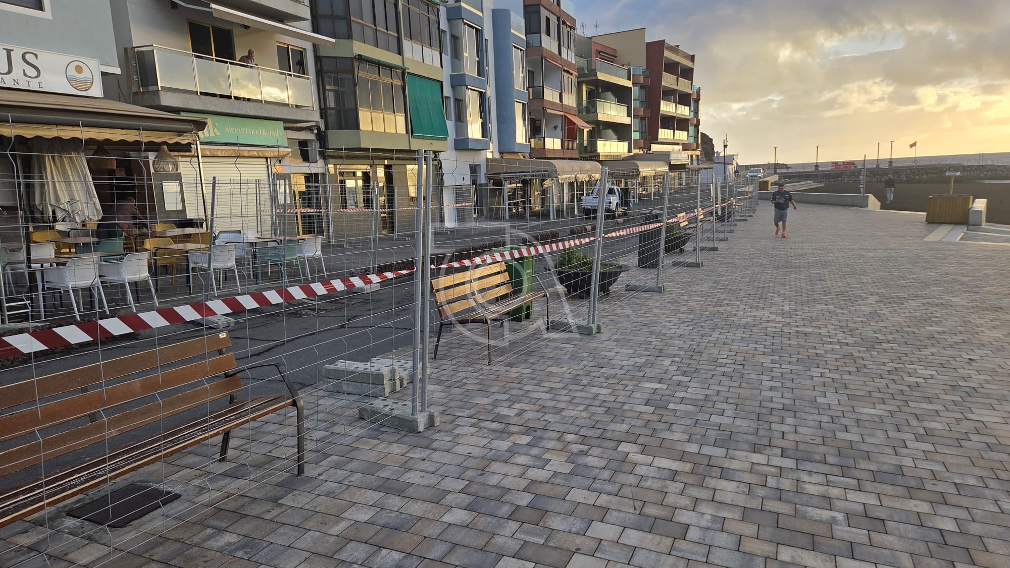 El arranque de la segunda fase de las obras de renovación del paseo marítimo de Melenara ha generado este martes las primeras tensiones entre los empresarios de la zona. La instalación de la valla metálica que delimita el área de trabajo ha obligado a eliminar temporalmente las terrazas de los locales para habilitar un paso estrecho que permita el acceso a viviendas y negocios.