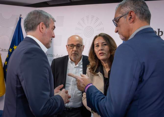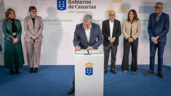 Clavijo, acompañado por la consejera de Bienestar Social, Candelaria Delgado, y de la de Sanidad, Esther Monzón, rubricó estos acuerdos con el presidente del Cabildo de Gran Canaria, Antonio Morales; la presidenta de Fuerteventura, Lola García; y el consejero de Bienestar Social e Inclusión del Cabildo de Lanzarote, Marci Acuña.