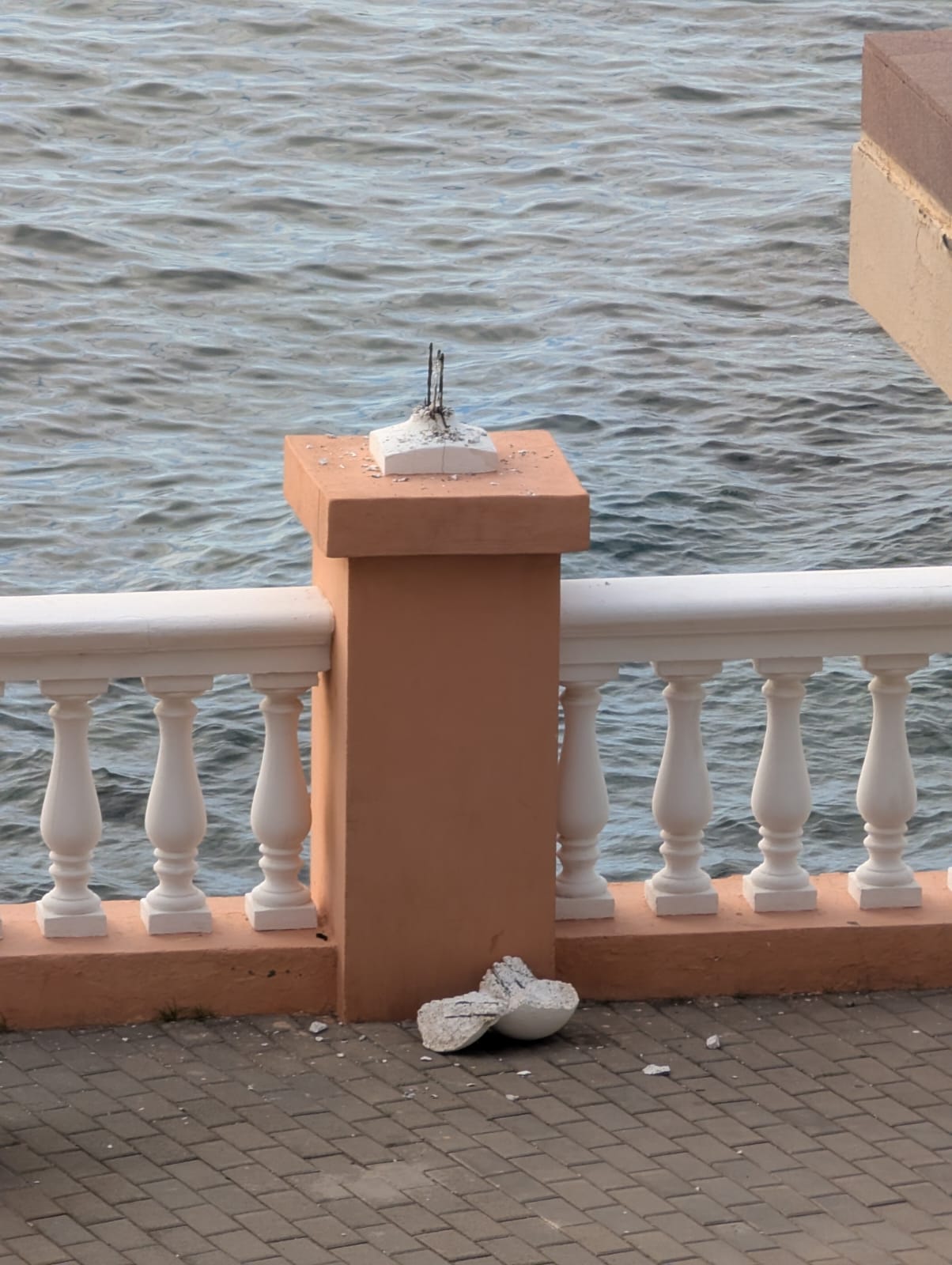 El Ayuntamiento de Telde ha denunciado y lamentado los actos vandálicos registrados en el paseo marítimo, donde varios remates ubicados sobre las pilastras de la barandilla fueron fracturados deliberadamente, dejando al descubierto varillas metálicas y generando una situación de riesgo para las personas que transitan por la zona.
