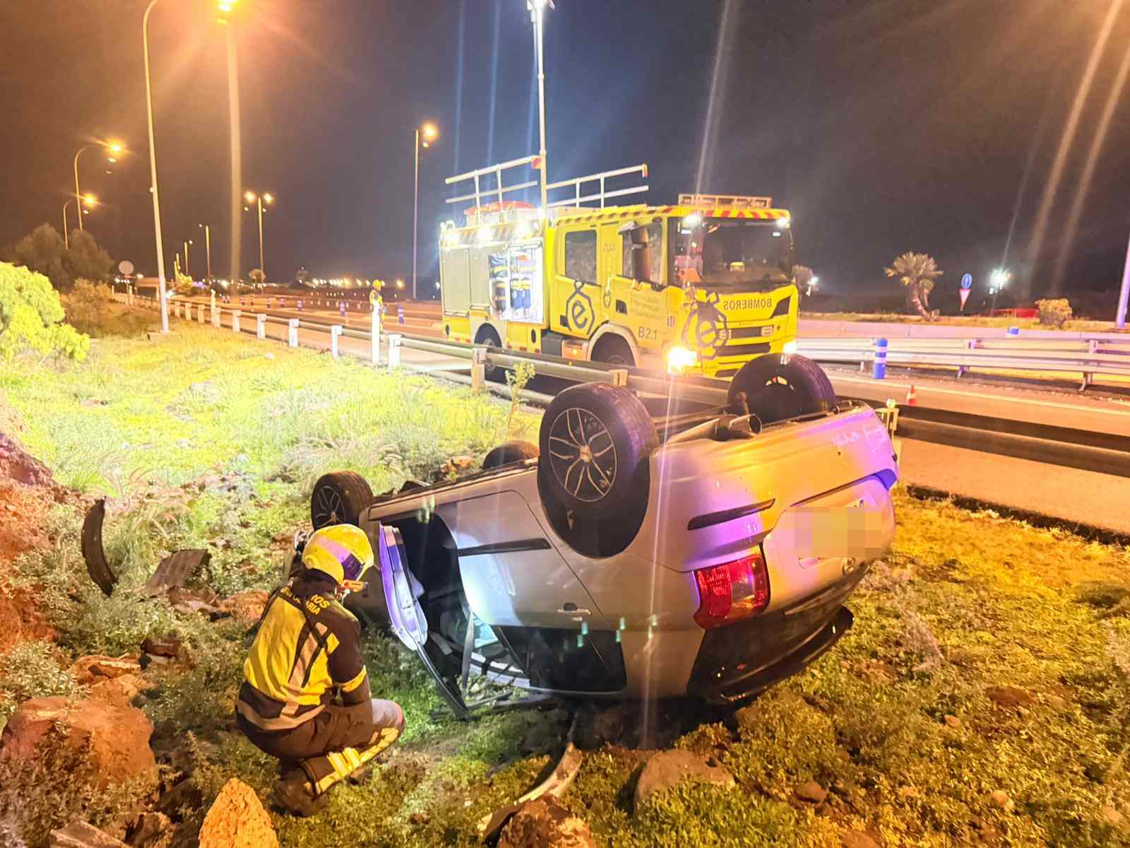 Un vehículo quedó precipitado y volcado esta madrugada en la zona del carril de incorporación al Carrizal de Ingenio, a la altura de la GC-1 en dirección sur, obligando a la activación de los servicios de emergencia poco después de las 04.00 horas.