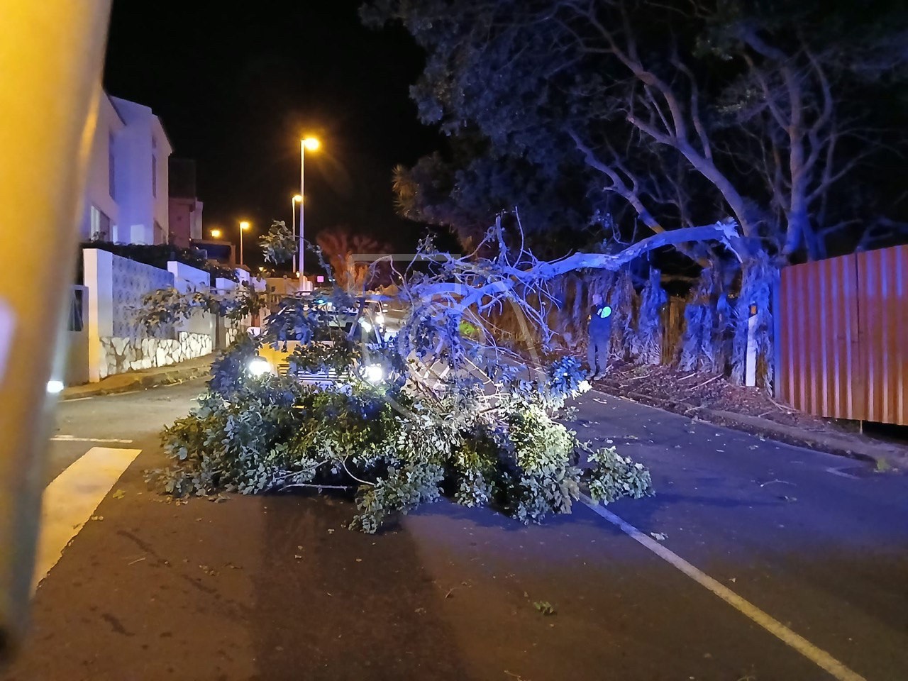 La caída de un árbol sobre un vehículo a primera hora de este lunes, sobre las 06.30 horas, obligó a los servicios de emergencia a cerrar al tráfico la calle Jack Lewis, en Montaña Las Palmas, que actualmente funciona como vía de comunicación alternativa entre Telde y Valsequillo al estar cerrada por obras de ampliación la carretera principal. El incidente se saldó sin tener que lamentar daños personales, tan solo materiales.