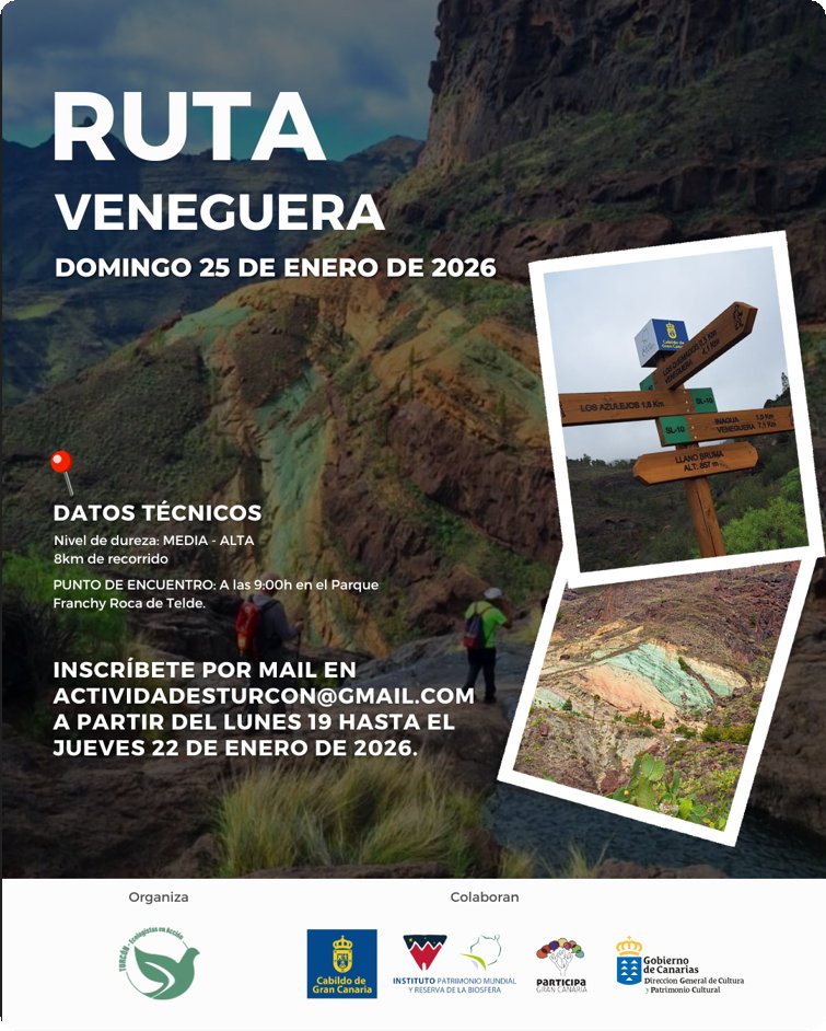 El Colectivo Turcón–Ecologistas en Acción ha programado para este domingo una actividad de senderismo en Veneguera (Mogán) enmarcada dentro de la programación anual de la asociación para este 2026.