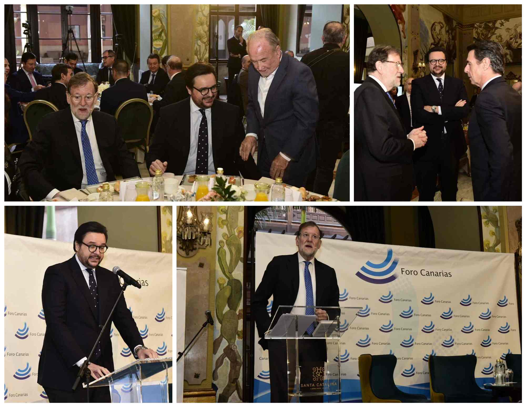El acto incluyó también un diálogo abierto en el que Rajoy respondió a preguntas planteadas por el presidente de la Confederación Canaria de Empresarios, Pedro Ortega, y el director de Canarias7, Francisco Suárez Álamo, en torno al presente político, los retos económicos del país y la situación internacional.