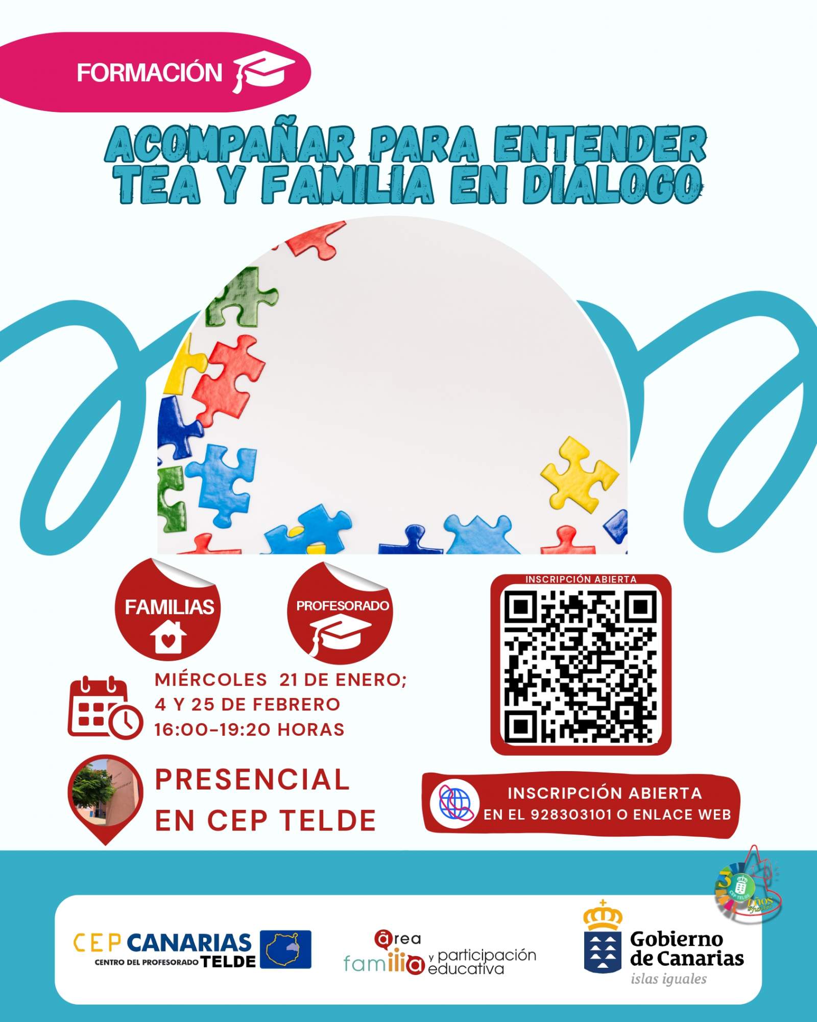 Con esta formación, que lleva por título Acompañar para entender TEA y familia en diálogo, se pretende dar una visión general sobre el trastorno del espectro autista, actualizar el conocimiento, el proceso de valoración, apoyar y trabajar con el alumnado y las familias.