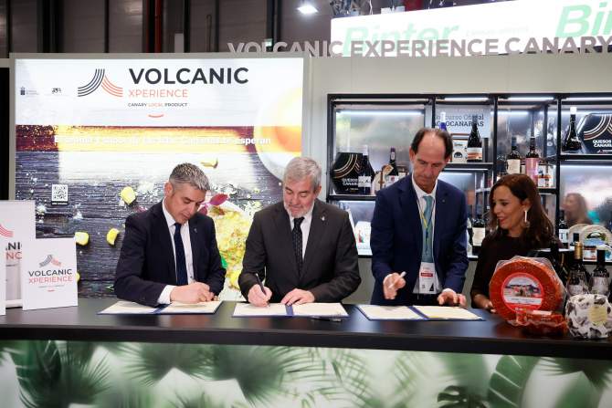 La empresa pública Gestión del Medio Rural de Canarias (GMR), dependiente de la Consejería de Agricultura, Ganadería, Pesca y Soberanía Alimentaria del Gobierno de Canarias, y Fred. Olsen Express han formalizado hoy jueves, 22 de enero, en el marco de la Feria Internacional de Turismo (Fitur), un convenio de colaboración destinado a reforzar la presencia del producto agroalimentario canario en los trayectos marítimos interinsulares y con Península y a promover acciones conjuntas de información y promoción.