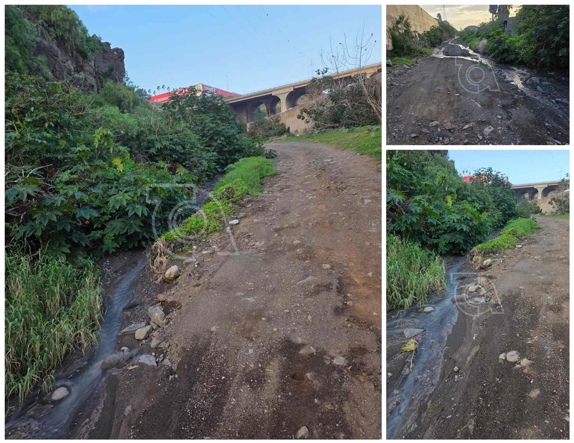 Mientras se completaban los trabajos, el agua residual continuó circulando por el tramo deteriorado, lo que originó el flujo continuo observado en la zona inferior del barranco, bajo el puente de la GC-1, tal y como adelantó TELDEACTUALIDAD durante la mañana de este domingo.