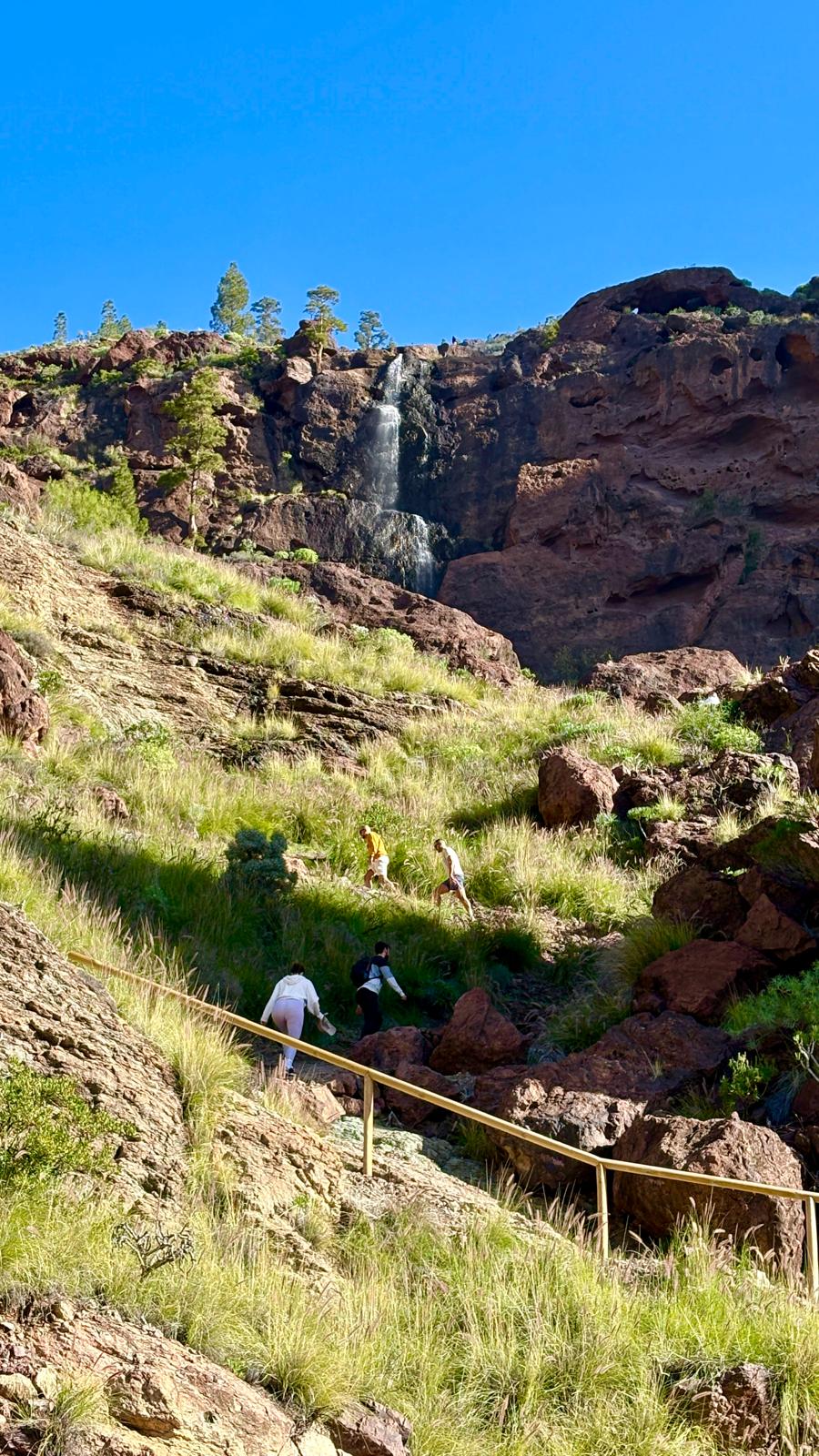 Las lluvias recientes han revitalizado el paisaje de Veneguera, tiñendo de verde la zona y haciendo rebosar los charcos, una estampa que recordó a los asistentes la antigua imagen de los “charcos azules”, muy célebre en los inicios del turismo en esta parte de la isla.