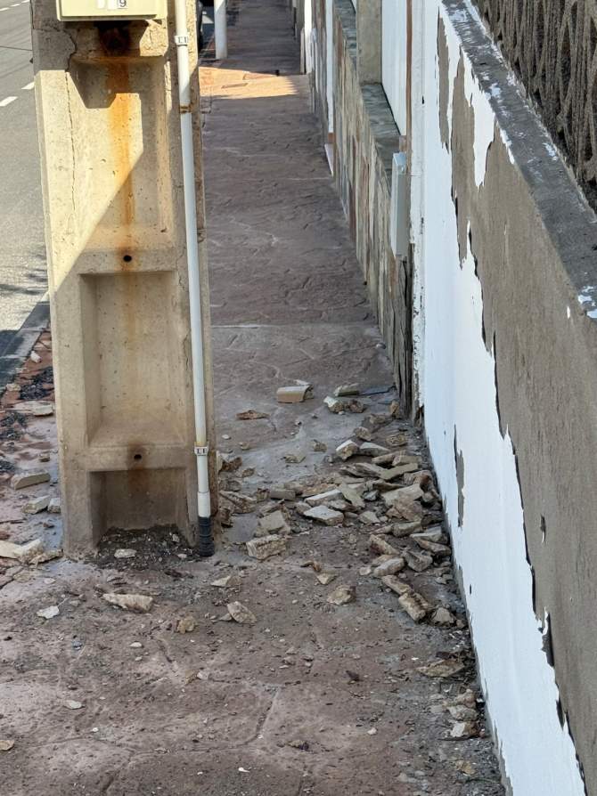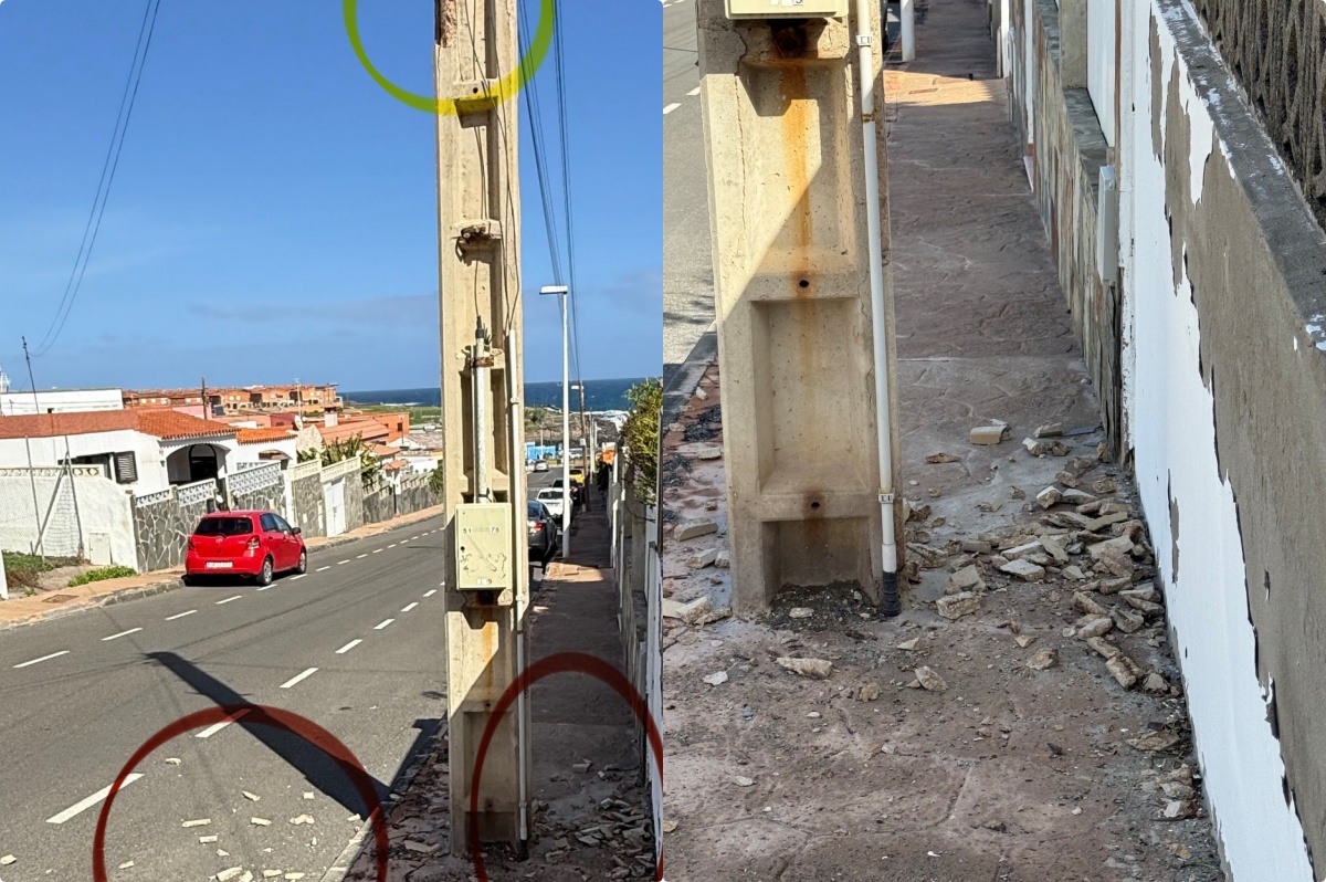 Las fuentes vecinales indican que "desde hace tiempo" se desprenden cascotes de un torreón de luz que "han sido retirados ante la ausencia de una intervención municipal" y que el servicio municipal de limpieza “no se ha personado en el lugar”. Además, aseguran que la instalación de telecomunicaciones no ha sido reparada y durante el último mes se han conectado nuevos cables.