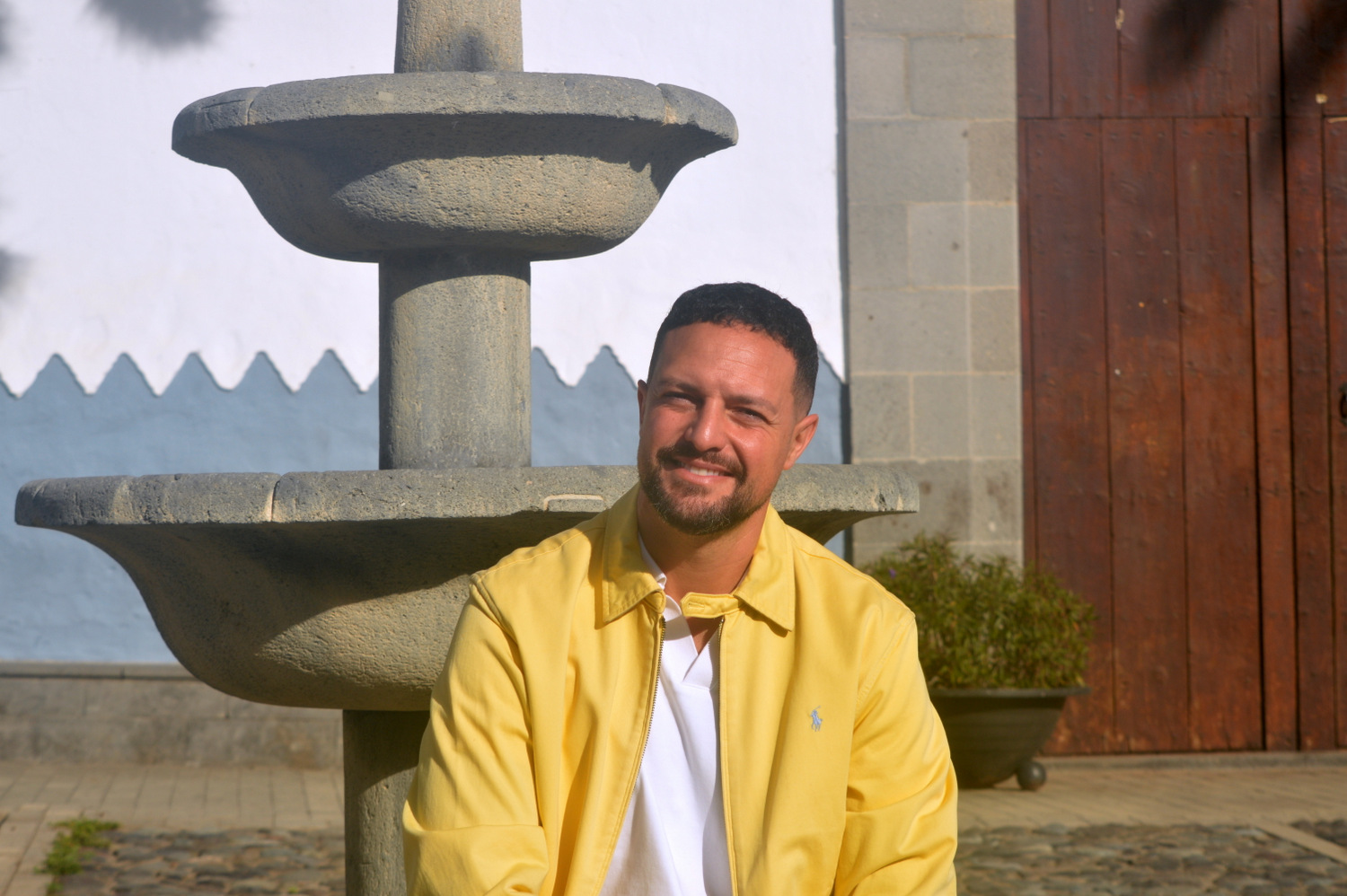 Leandro Asís atiende a TELDEACTUALIDAD en el núcleo fuerte de San Francisco: plaza junto a la iglesia y luego en el mirador donde se puede otear barrios emblemáticos como Caserones, Cendro y Tara. ¿Motivo de su elección?: “Es un barrio superpintoresco, muy emblemático, siendo un miércoles a la mañana, una zona tranquila. Representa muy bien lo que es la zona colonial, no solo de Canarias, sino de Telde”.