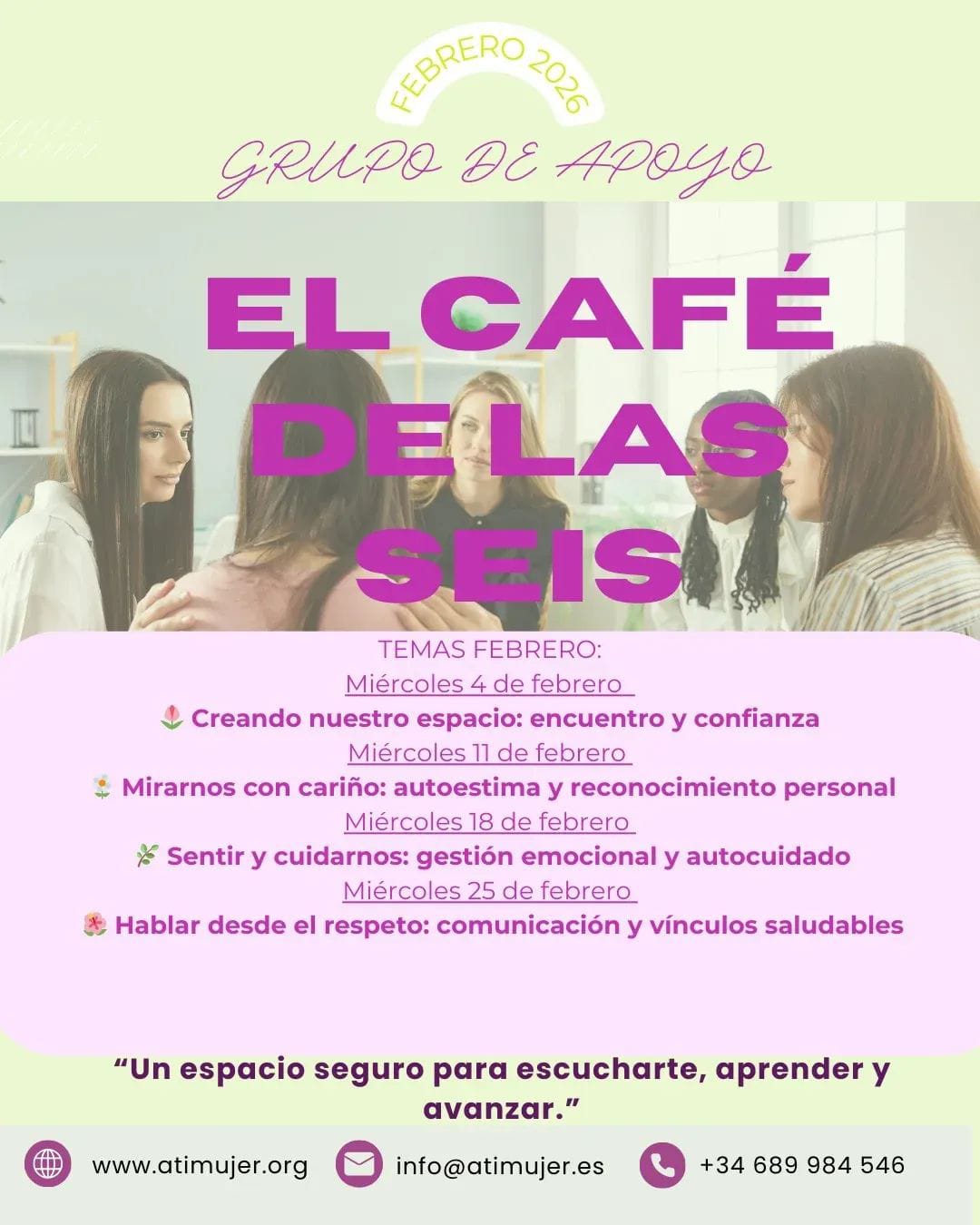 La asociación feminista A ti mujer vuelve a poner en marcha El café de las seis en su sede de Telde. De esta manera, cada miércoles, el centro abrirá sus puertas a las mujeres para crear un espacio cálido, cercano y seguro en el que se les permita compartir experiencias, de forma confidencial, y puedan encontrar escucha y acompañamiento.