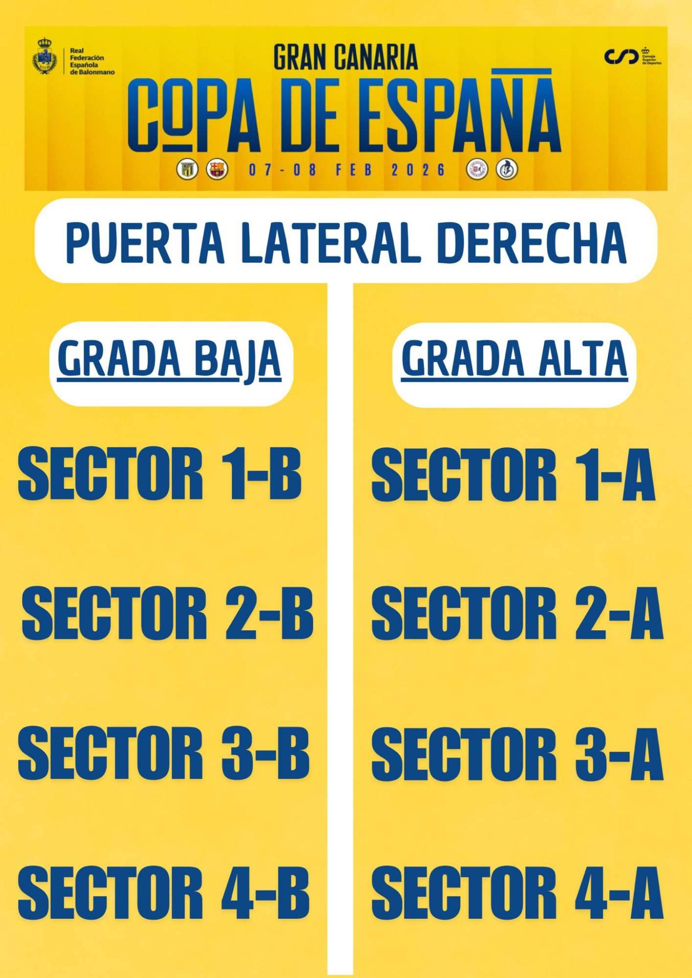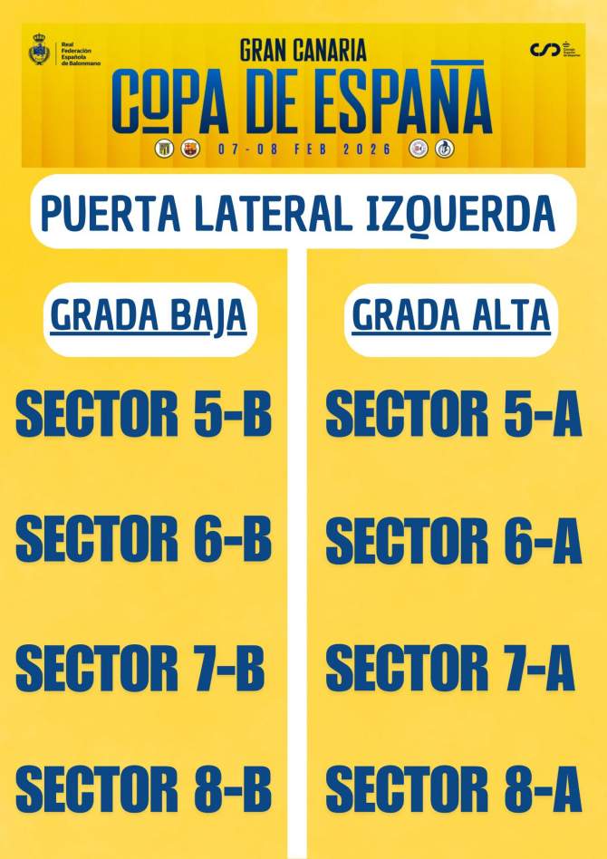 Con motivo de la celebración de la Copa de España y la Minicopa de España en Gran Canaria, la Federación Canaria de Balonmano ha establecido un sistema de accesos diferenciados al Pabellón Insular Rita Hernández de Telde, atendiendo a la ubicación de los sectores y a la comodidad del público asistente.