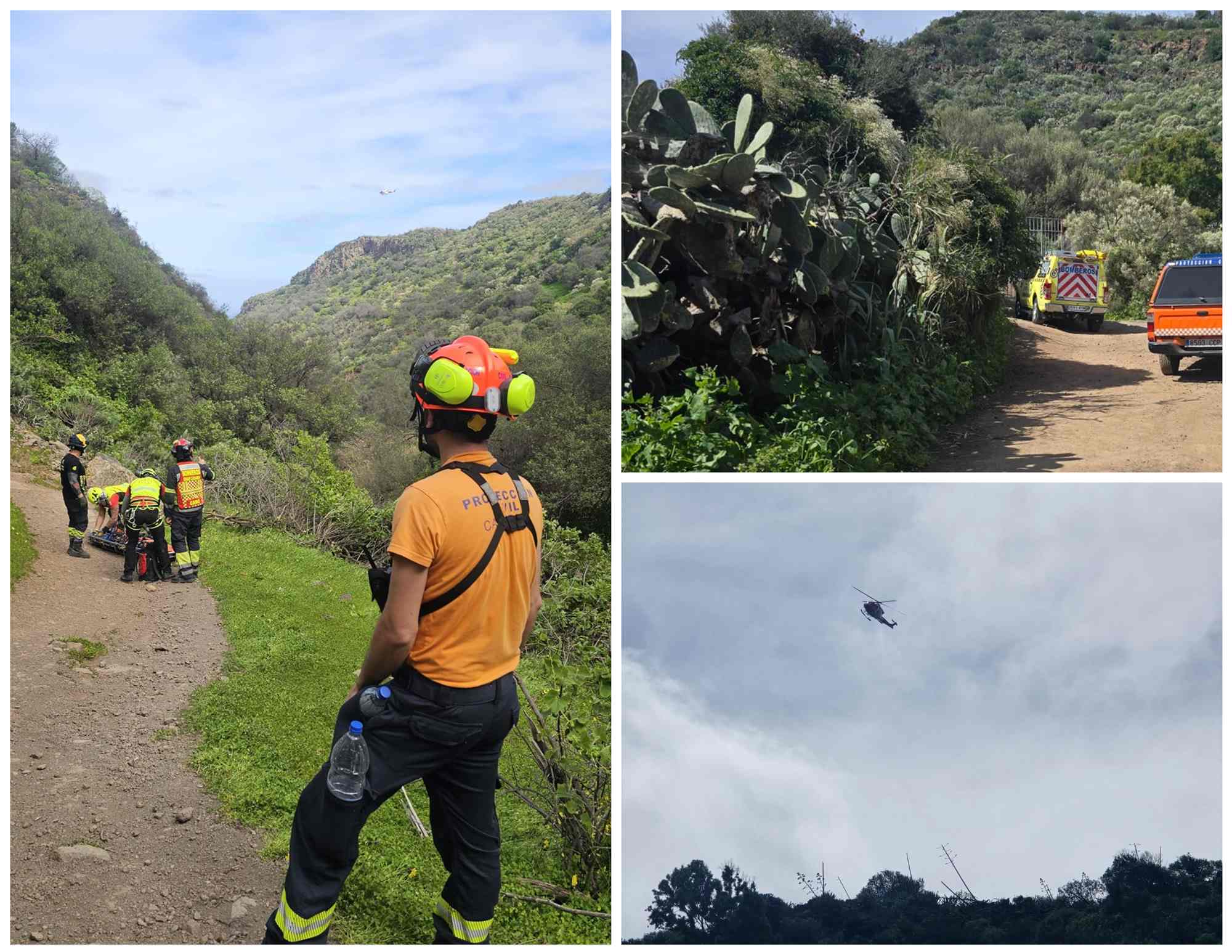 Efectivos del Consorcio de Emergencias de Gran Canaria, junto a Protección Civilde Telde, accedieron hasta el lugar del accidente y, tras valorar la situación, solicitaron la evacuación aérea debido a las dificultades para un traslado por tierra.