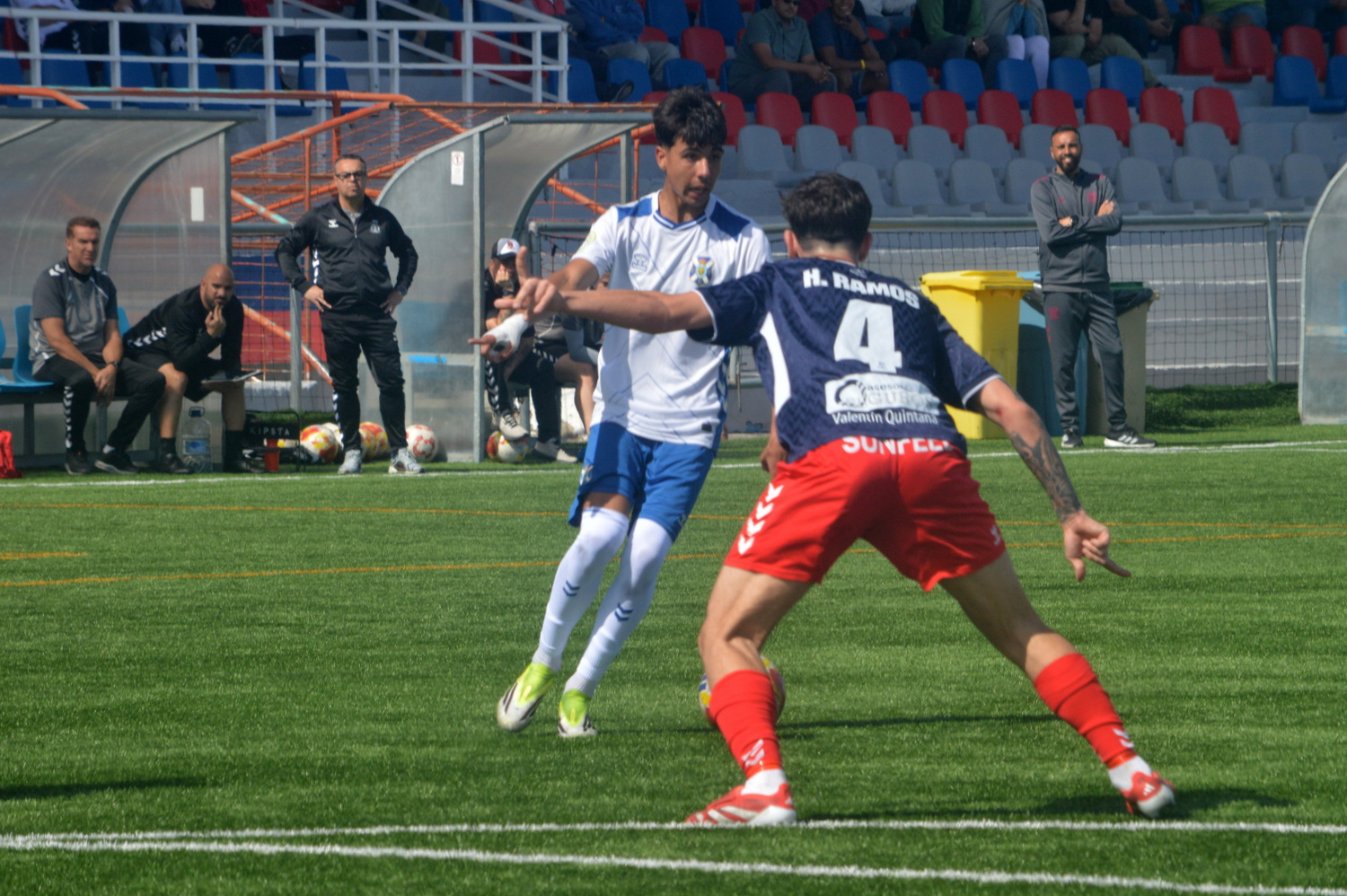 El Tenerife C, todo lo contrario. Dueño y señor del partido, maniató a la escuadra teldense, aunque lo cierto que lo hizo lejos de la portería. El conjunto azulón tuvo la fortaleza suficiente para impedir las sensaciones de peligro, aunque se nota claramente el miedo de los defensores cuando el balón rondaba las inmediaciones del área.