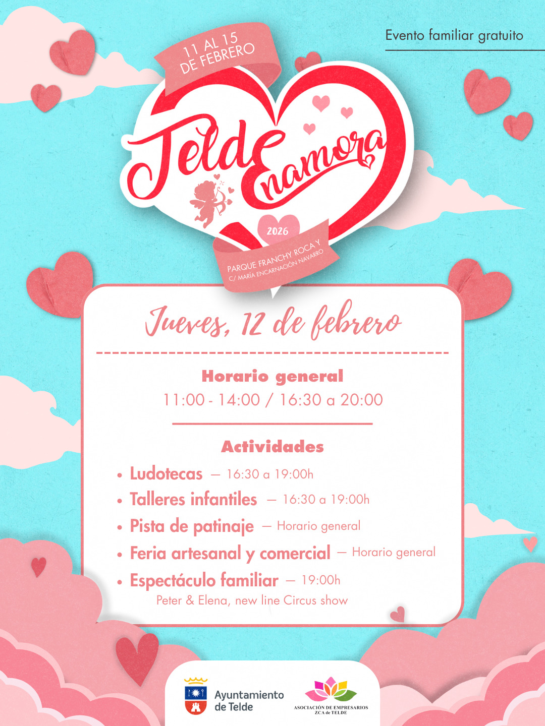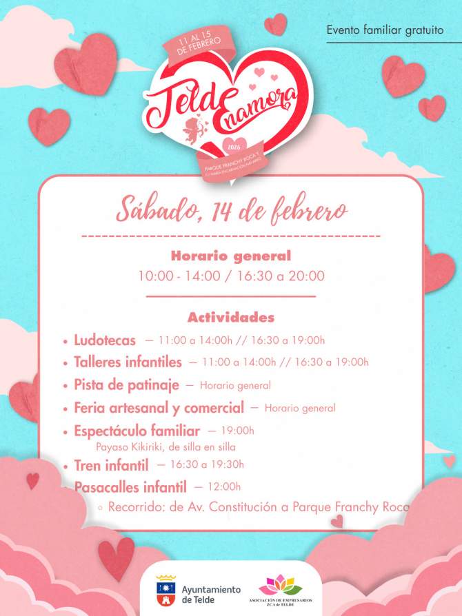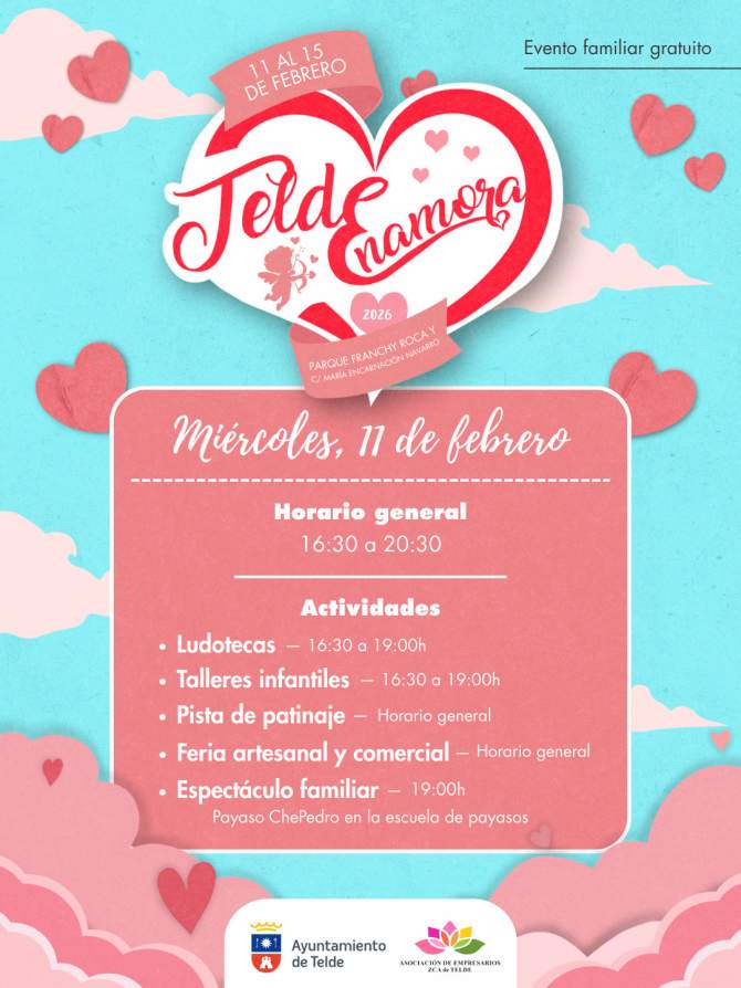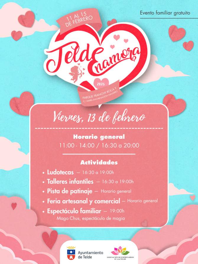 El evento familiar gratuito convierte nuevamente al centro de la ciudad en punto de encuentro para familias y visitantes con motivo del Día de San Valentín. Durante cinco días consecutivos, el corazón de Telde acogerá una programación continua diseñada para fomentar la convivencia, respaldar al comercio local y generar un ambiente festivo en torno al amor y la amistad.