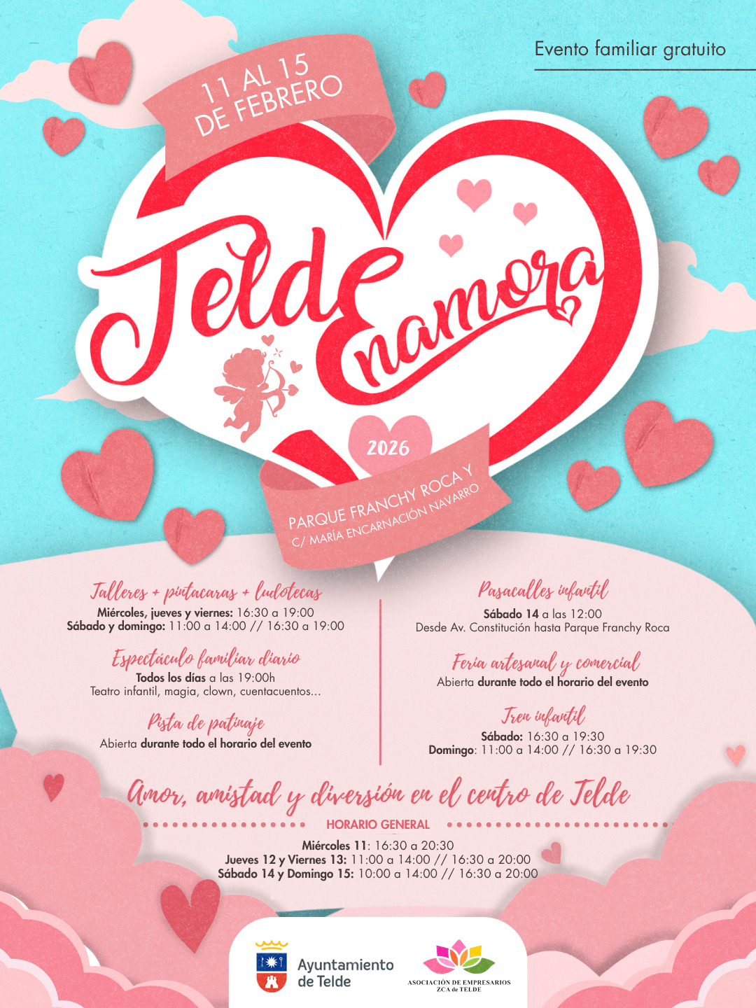 Telde Enamora 2026 es un evento gratuito, familiar y abierto a toda la ciudadanía, organizado por el Ayuntamiento de Telde en colaboración con la Asociación de Empresarios de la Zona Comercial Abierta de Telde, consolidándose como una cita destacada para dinamizar el centro urbano y disfrutar de la ciudad en un ambiente cercano y festivo.