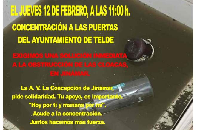 "Las familias afectadas lo que quieren, de verdad, es la solución del problema y han mostrado la voluntad de diálogo y colaboración reiteradamente, pero ante la negativa municipal para atender el problema se han visto obligados a manifestarse este jueves 12 de febrero, a las 11.00 horas, ante las puertas del Ayuntamiento de Telde, para exigir una solución inmediata ante el problema sanitario que supone la obstrucción del saneamiento público y el reflujo de las aguas fecales al interior de sus domicilios", señalan desde la asociación de vecinos.