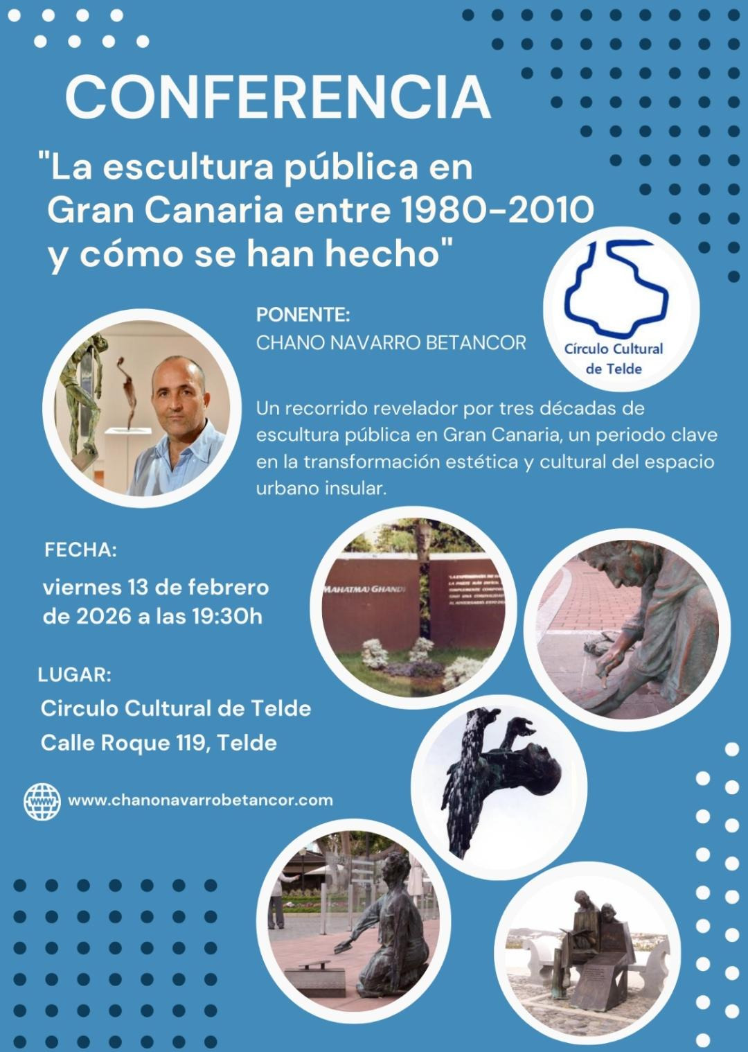 El Círculo Cultural de Telde, en coherencia con su vocación de promover y difundir la cultura en la sociedad teldense, invita a toda la ciudadanía a asistir a esta cita, que se presenta como una oportunidad para conocer de primera mano la evolución de la escultura pública en Gran Canaria y dialogar con uno de los referentes del panorama artístico contemporáneo canario.