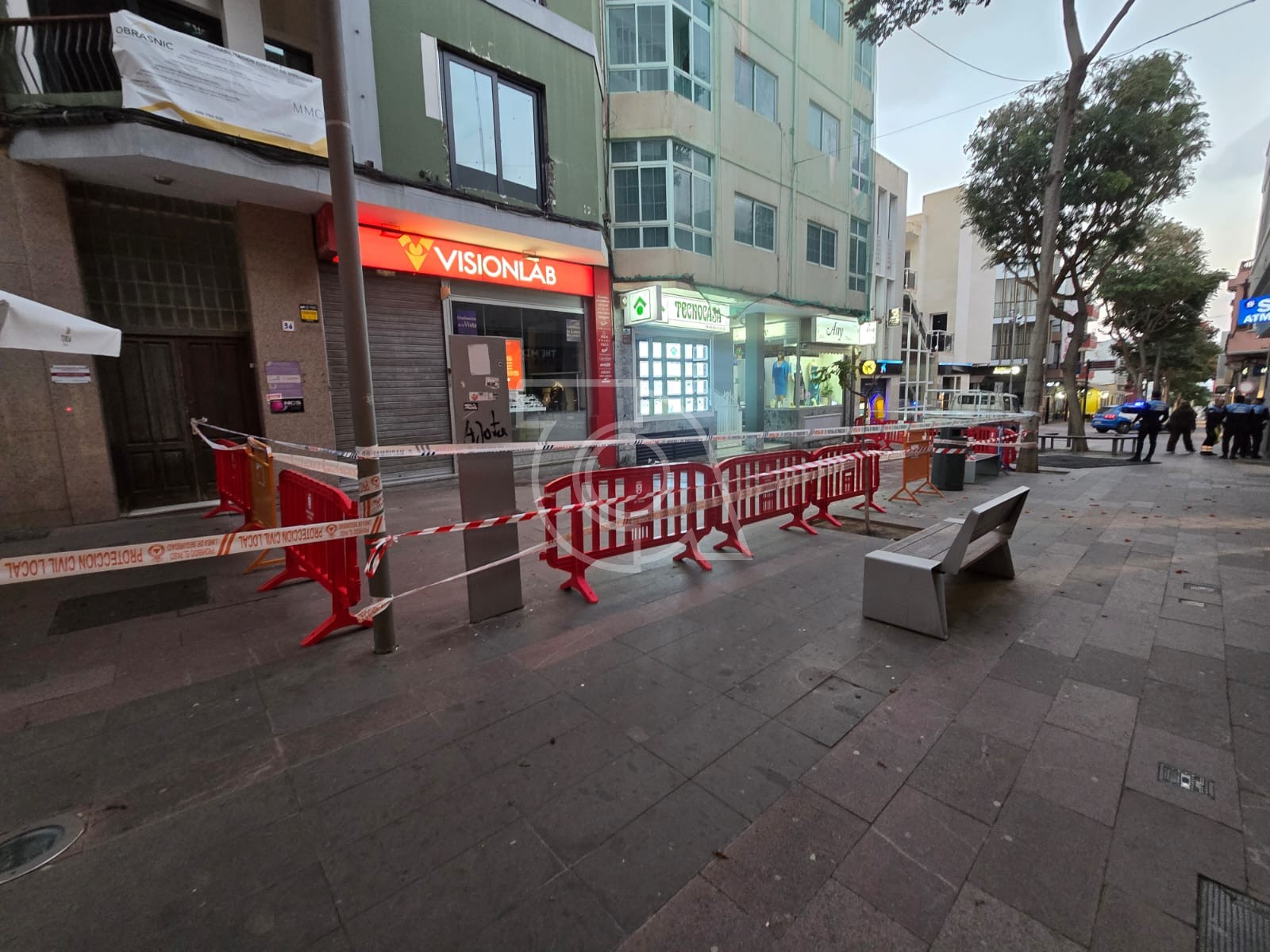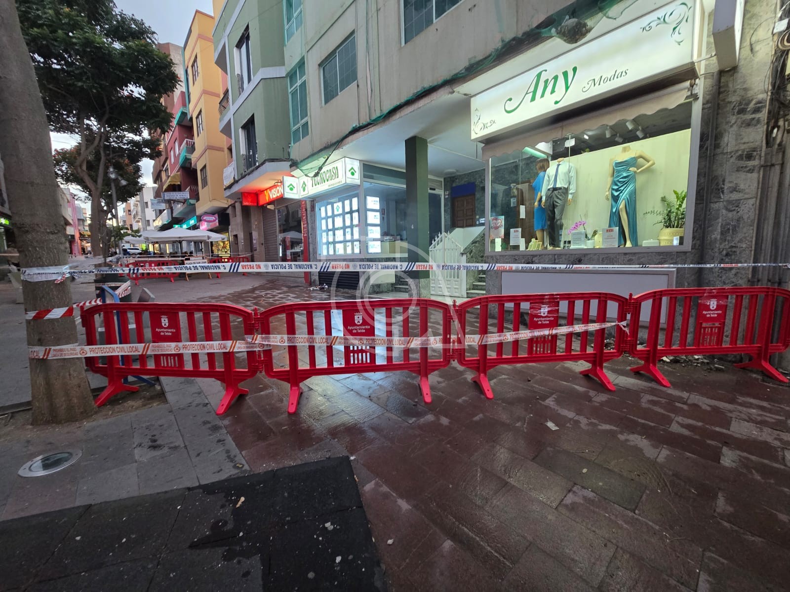 Bomberos del Consorcio de Emergencias de Gran Canaria confirmaron que el incidente se debió al desprendimiento de parte de una cornisa y colaboraron con el resto de los recursos desplazados. Agentes de la Policía Local y de la Policía Nacional realizaron las diligencias correspondientes para esclarecer lo ocurrido.