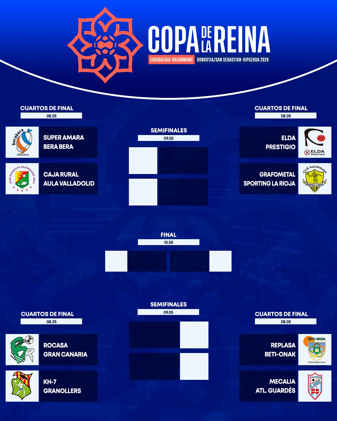 Con este sorteo, tanto el equipo de División de Honor como el conjunto cadete del Rocasa Gran Canaria ya conocen su hoja de ruta para la XLVII Copa de la Reina, que se celebrará del 8 al 10 de mayo en el Pabellón de Illumbe, en Donosti.