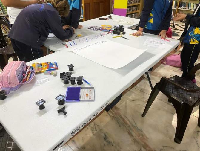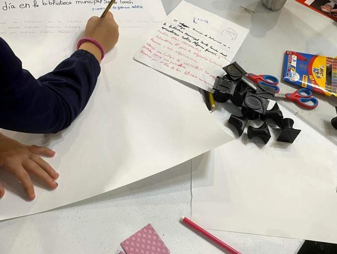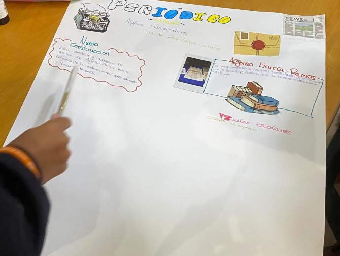 La actividad consistió en la elaboración colectiva de la portada de un periódico, donde los escolares crearon titulares, noticias y fotografías, trabajando en equipo y fomentando su creatividad. Por un día, la Biblioteca Saulo Torón se convirtió en una auténtica redacción periodística.