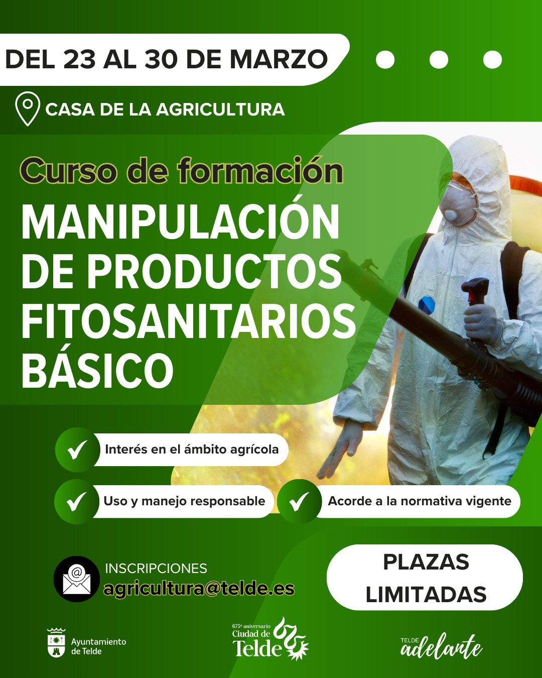 El Ayuntamiento de Telde, a través de la Concejalía de Sector Primario, Playas y Contratación, que dirige María Calderín, ha abierto el plazo de inscripción para el curso de Manipulador de Productos Fitosanitarios Básico, orientado a profesionales y personas interesadas en el ámbito agrícola.