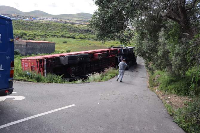 El vehículo, un camión de 18 ruedas que se dirigía a entregar material, subía cargado de mercancías por carretera de Los Picos hacia Lomo Bristol. Al abandonar la GC-130 a la altura del número 121 y tomar un desvío a la izquierda por un camino vecinal, junto a una antigua presa, se topó con un pequeño desnivel que el conductor no advirtió y que provocó el vuelco.