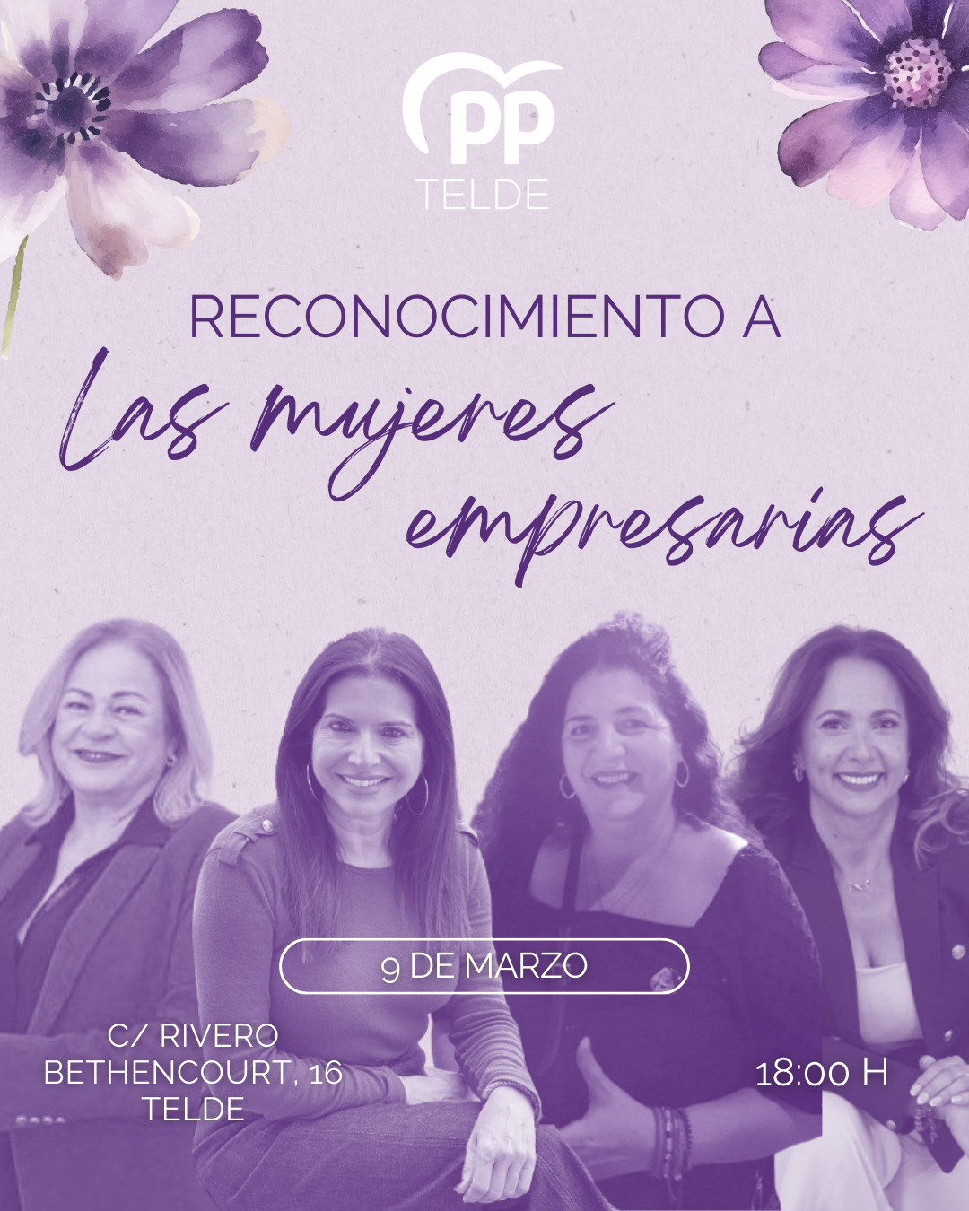 Los populares teldenses celebrarán el próximo 9 de marzo, a las 18.00 horas, en su sede de la calle Rivero Bethencourt, número 16; un acto dedicado "a las mujeres empresarias del municipio y a aquellas que, sin ser empresarias, han apostado firmemente por el respaldo a las pymes y al comercio local, contribuyendo de manera decisiva al desarrollo económico y social de la ciudad".