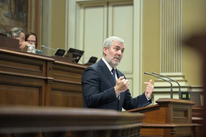 El jefe del Ejecutivo autonómico subrayó en su intervención en el Parlamento la relevancia de que Canarias “funcione” superando el viento en contra que llega desde el “desorden internacional” provocado por la vuelta de Donald Trump a la presidencia de EE UU. Hizo especial referencia a la situación de Cuba, donde residen muchos canarios que sufren la “injusticia” del “ahogo” de Estados Unidos.
