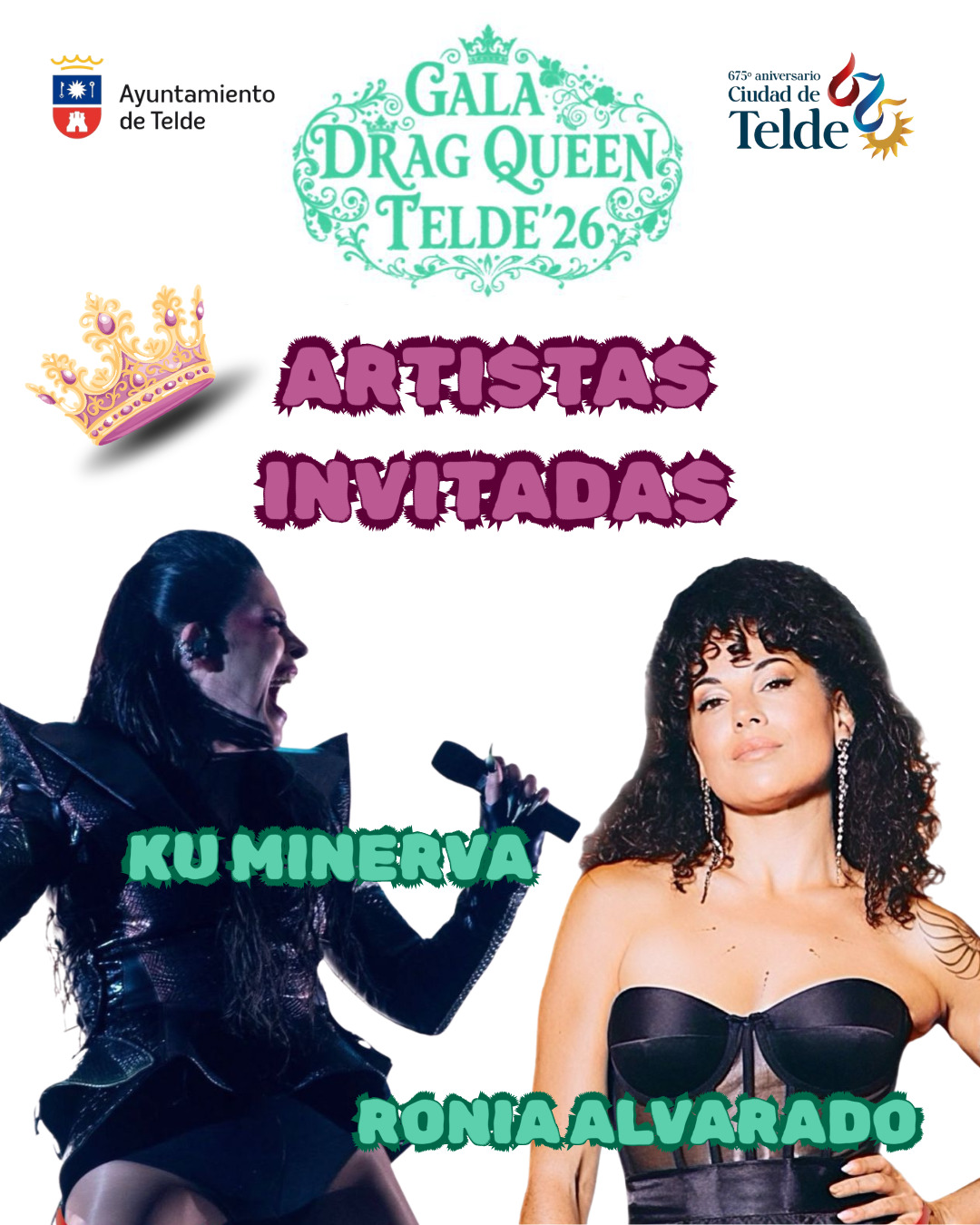 La Gala Drag Queen del Carnaval de Telde La leyenda de la Corona Bermeja contará también con la participación de dos potentes artistas invitadas que aportarán música y espectáculo a una de las noches más esperadas de las fiestas: Ronia Alvarado y Ku Minerva.